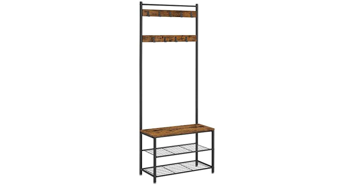 Rustic Coat Rack with Shoe Storage 70 x 32 x 175 cm, Brown description of