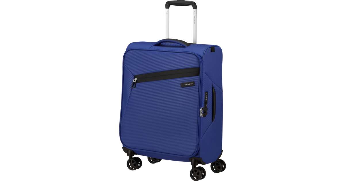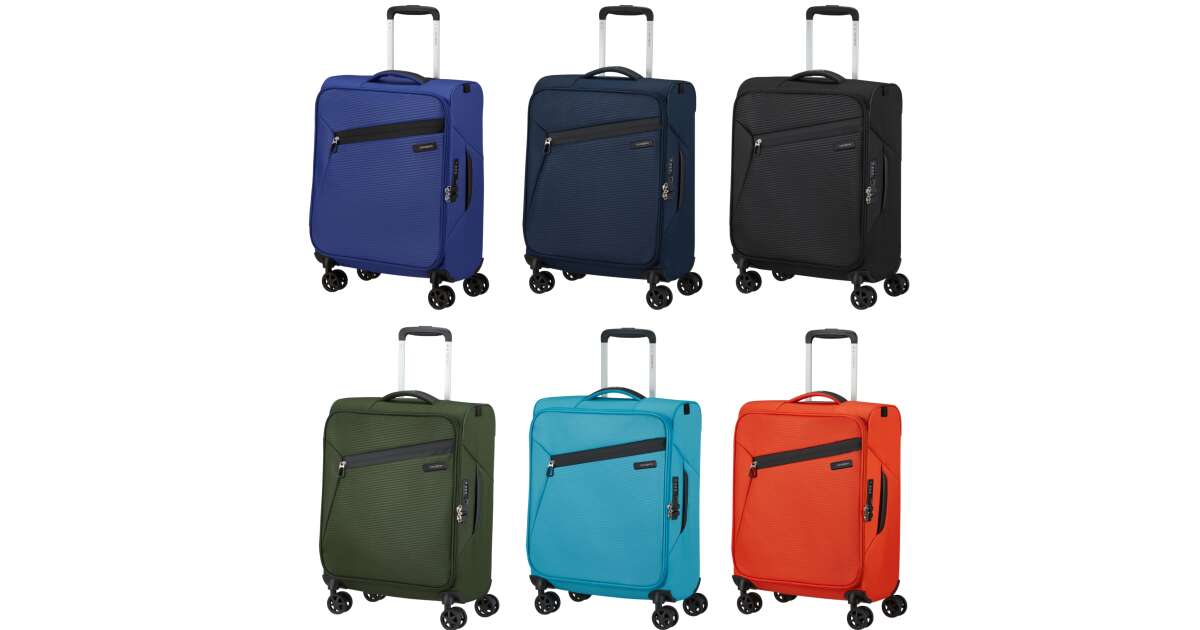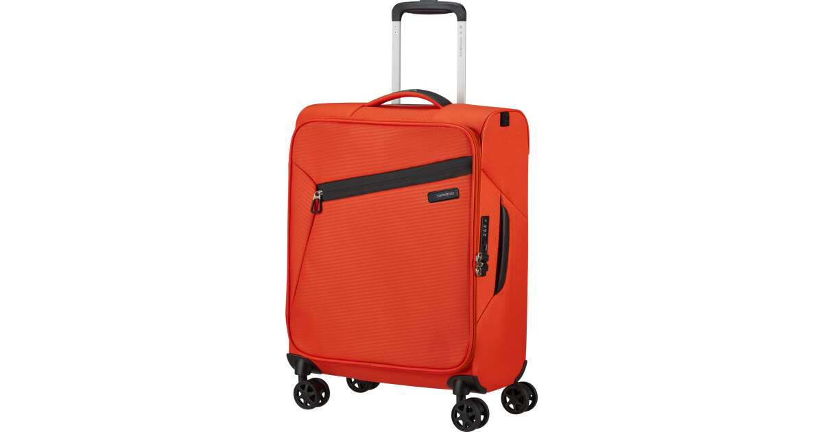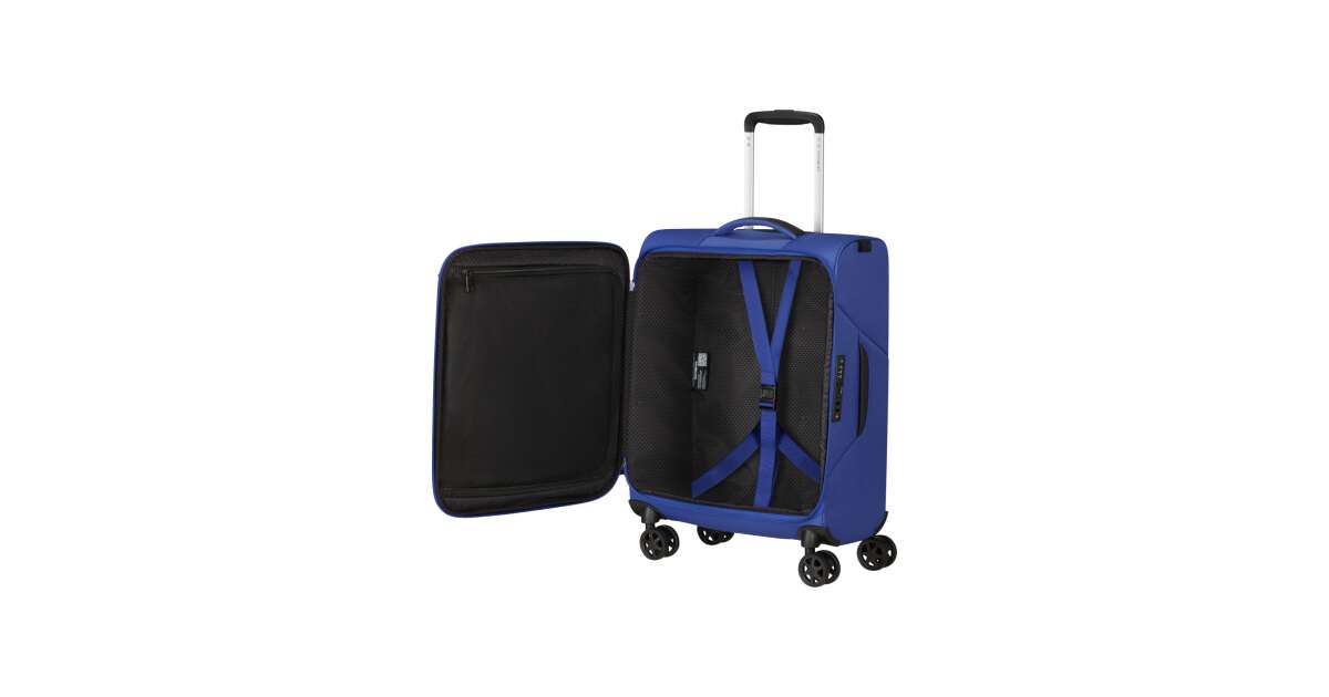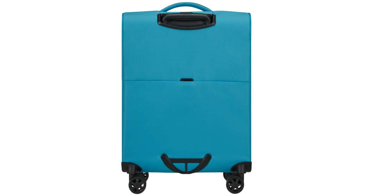 Features: - Available colours: green, dark blue, black, blue, orange, light blue - Model: spinner (4 wheels) - Outer material: polyester - Inner material: made from consumer recycled PET bottles using our Recyclex™ material technology - Size: 55 x 40 x 20 cm - Size: cabin trunk - Capacity: 39 L - Average packing capacity: approx. 10 kg - Weight: 1,8 kg - Material information: soft touch - Lock: built-in 3-digit TSA lock - Zippers: colour matching zipper - Handles: top handles - Pull handle: double lock - Number of wheels: 4 wheels - Wheels: double wheel - External pockets: 1 front zipped pocket - Bottom compartment: bottom compartment with colour-matched straps - Upper compartment: upper compartment with mesh dividers - Bottom handle for easy carrying - Tag holder: integrated ID Tag - Warranty: 5 years global warranty