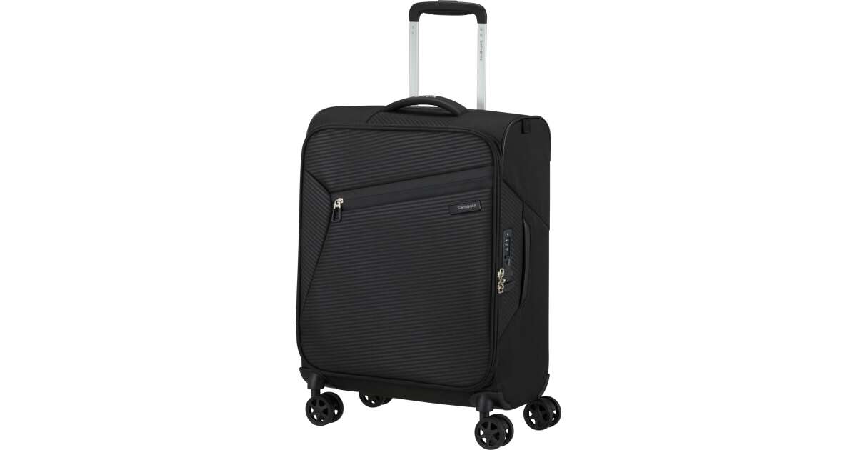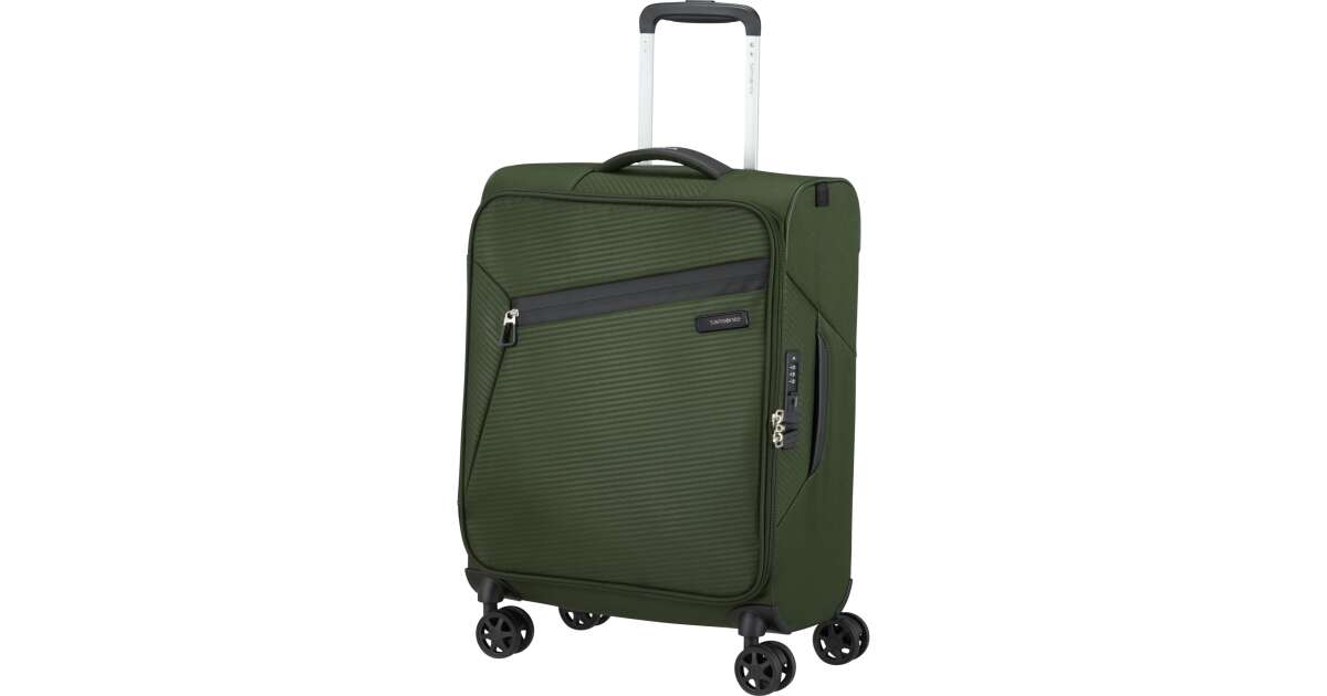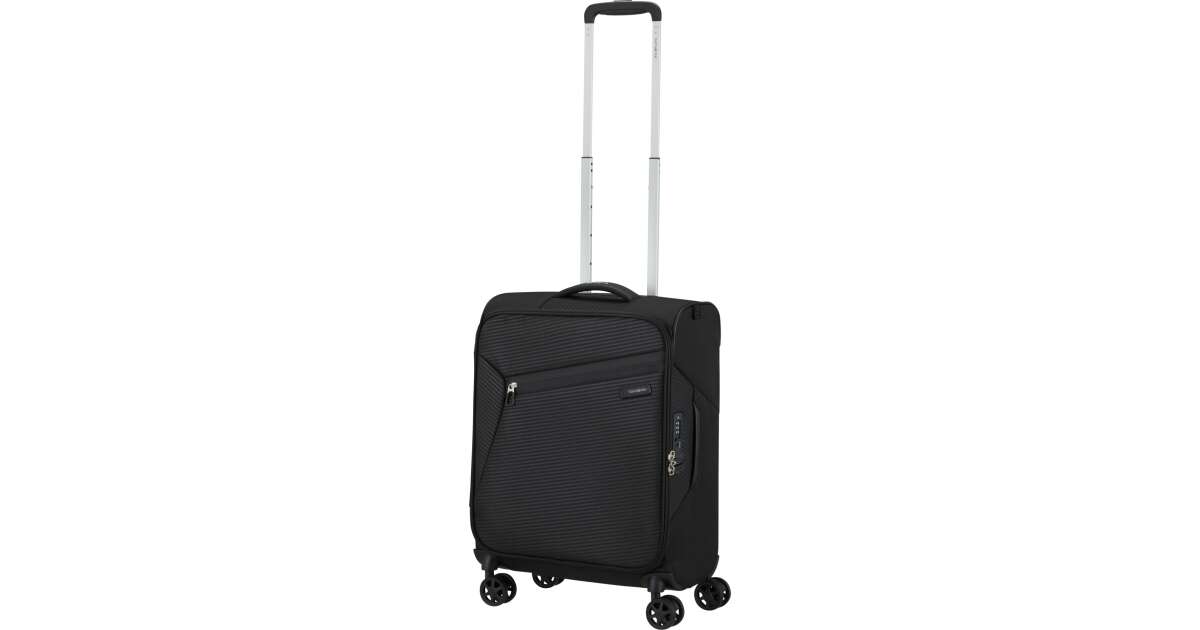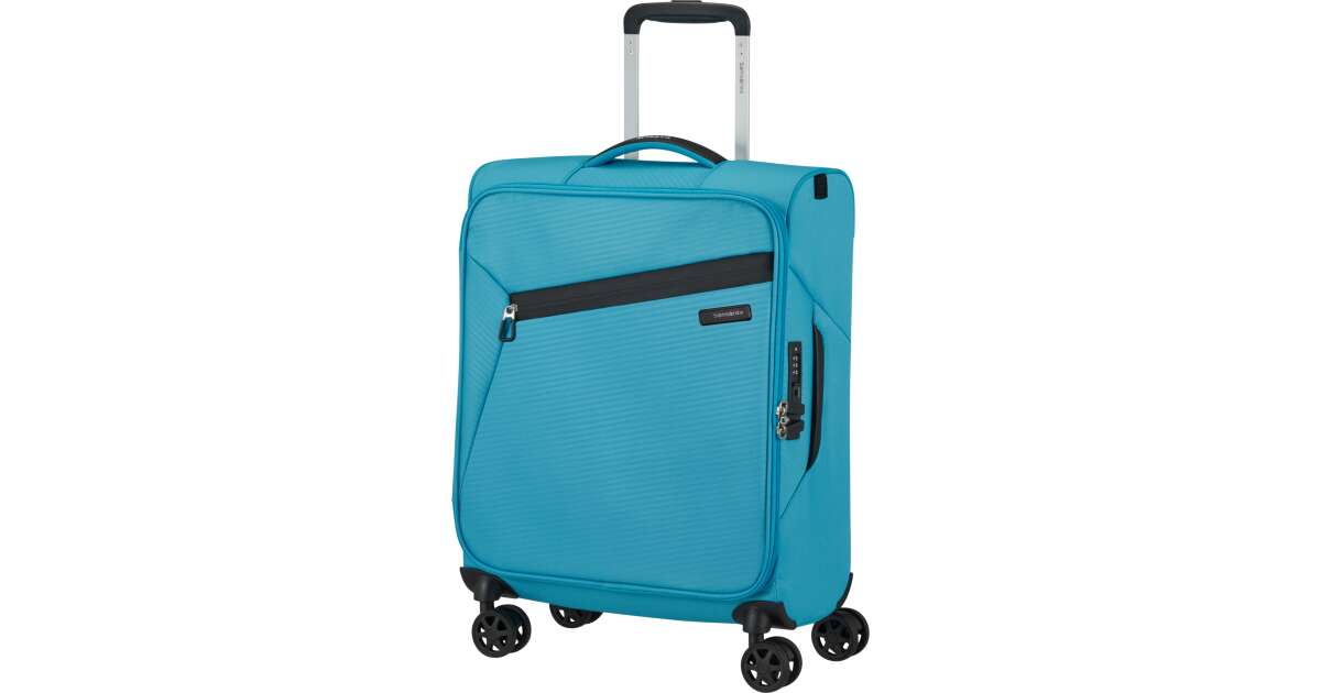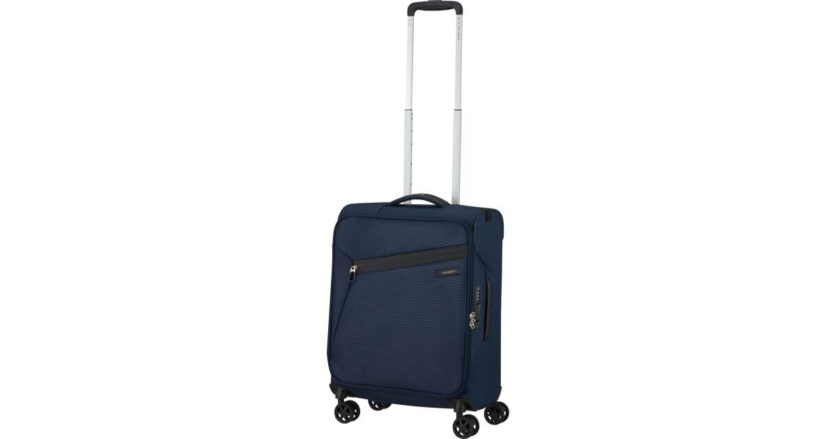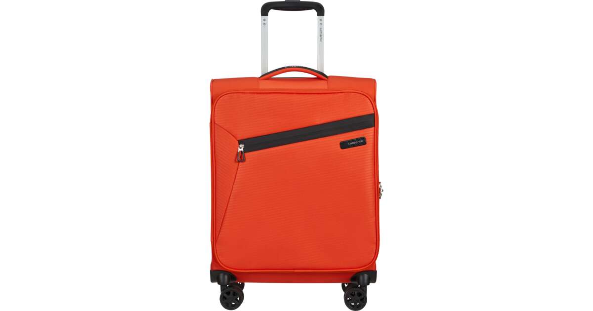 Features: - Available colours: green, dark blue, black, blue, orange, light blue - Model: spinner (4 wheels) - Outer material: polyester - Inner material: made from consumer recycled PET bottles using our Recyclex™ material technology - Size: 55 x 40 x 20 cm - Size: cabin trunk - Capacity: 39 L - Average packing capacity: approx. 10 kg - Weight: 1,8 kg - Material information: soft touch - Lock: built-in 3-digit TSA lock - Zippers: colour matching zipper - Handles: top handles - Pull handle: double lock - Number of wheels: 4 wheels - Wheels: double wheel - External pockets: 1 front zipped pocket - Bottom compartment: bottom compartment with colour-matched straps - Upper compartment: upper compartment with mesh dividers - Bottom handle for easy carrying - Tag holder: integrated ID Tag - Warranty: 5 years global warranty