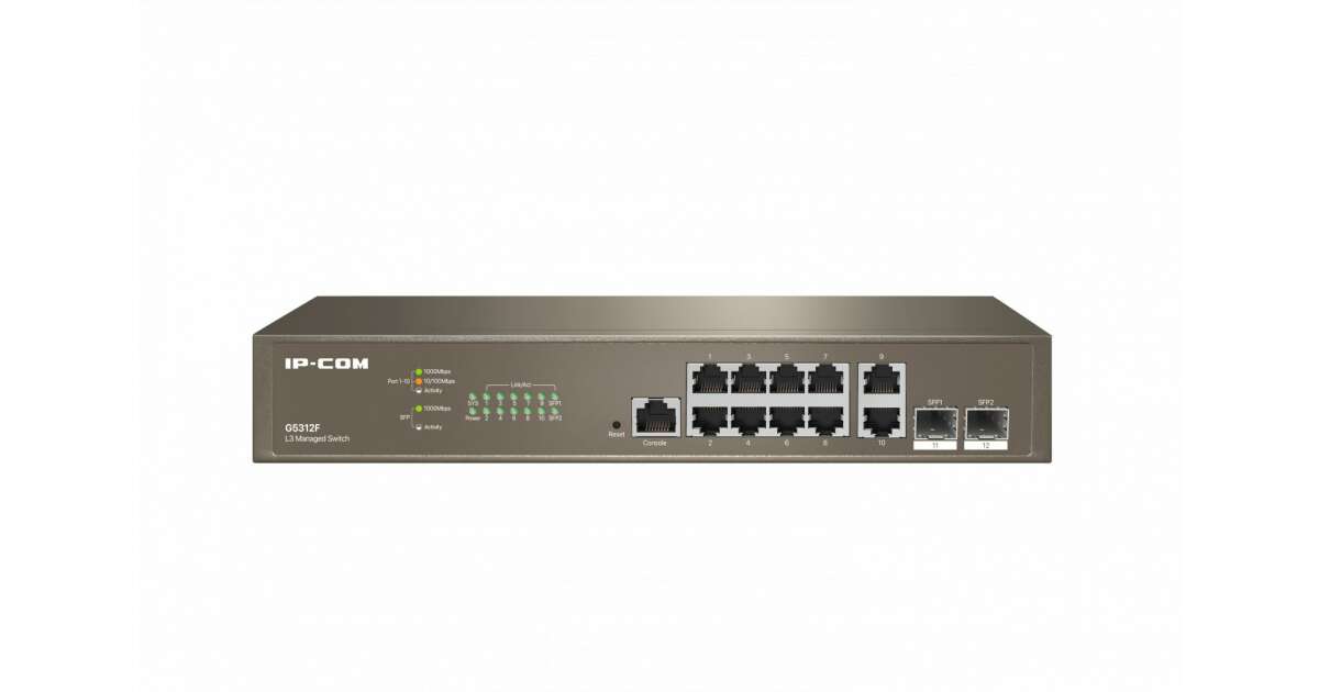 The IP-COM G5312F is a high-performance Layer-3 managed switch, perfect for medium and large networks, such as businesses and universities. It features 12 Gigabit Ethernet ports and 2 SFP ports, ensuring fast and reliable data transfer.