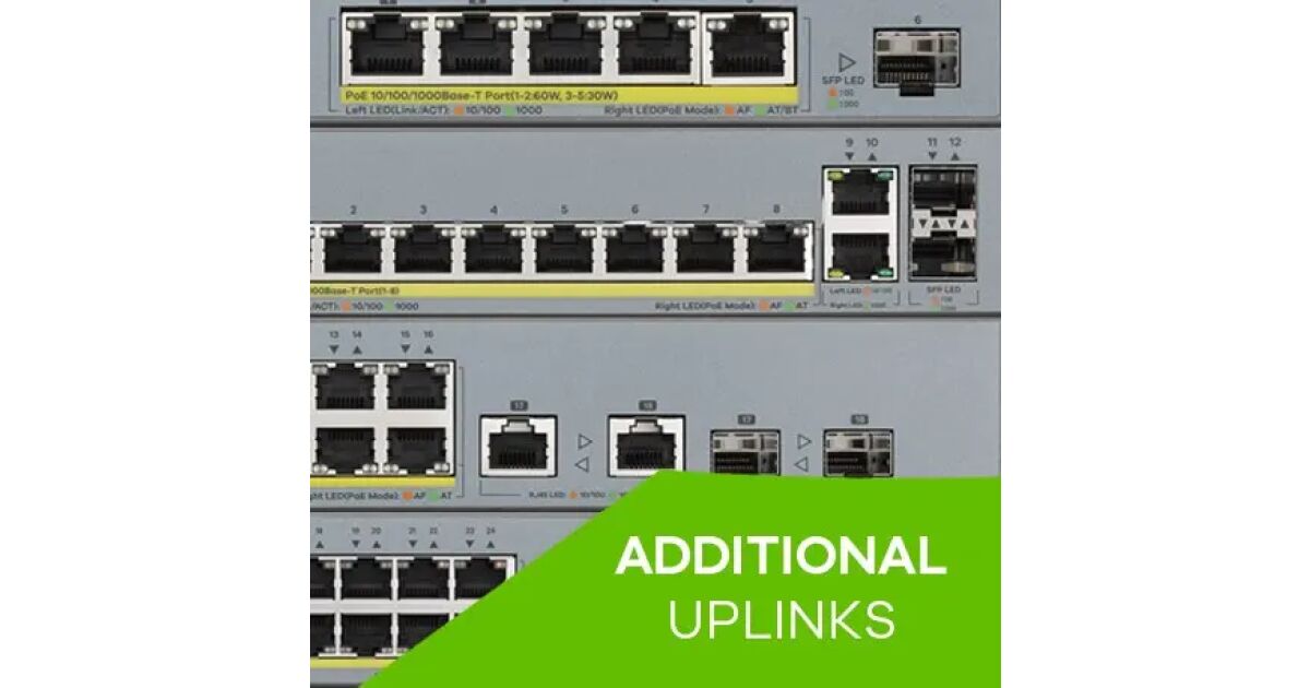 - 16 x 100/1000 Mbps PoE ports (802.3af/at)