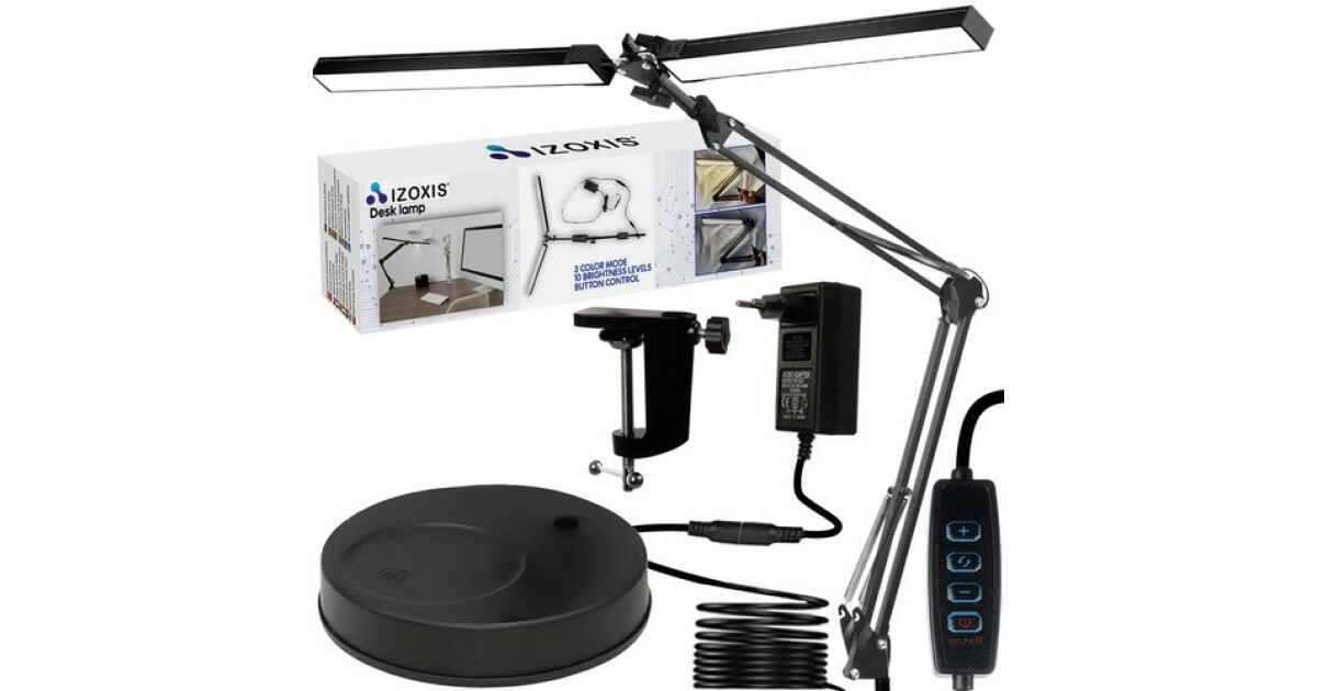 This Izoxis desk lamp is ideal for anyone looking for comfortable and efficient lighting for work or study. It has two separate LED light sources that can be controlled independently, allowing you to perfectly adjust the brightness and color.