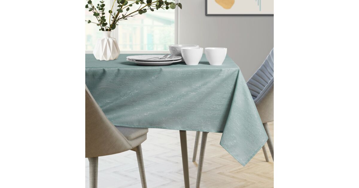 Tablecloth Vesta mint green embossed modern 155x250 AmeliaHome