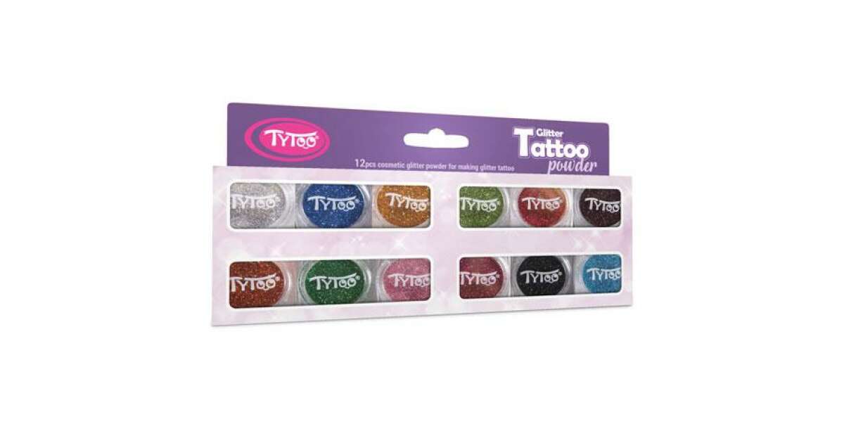 This 12-piece glitter powder set is perfect for creating fun and sparkly tattoos! Each 2.5 ml jar is enough for 60-80 designs.