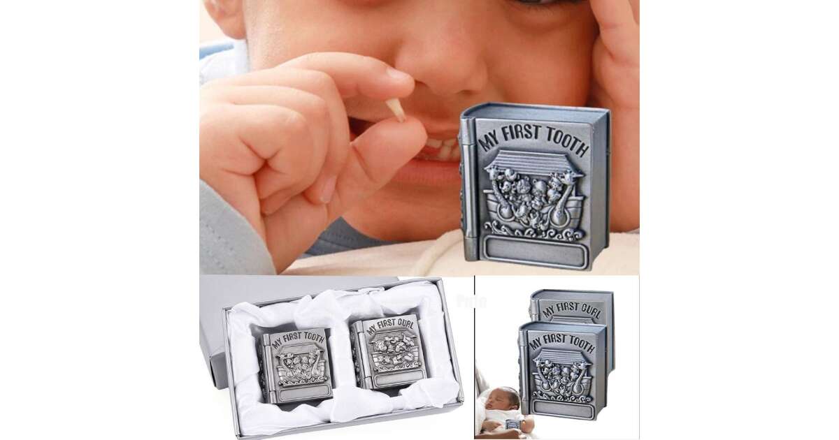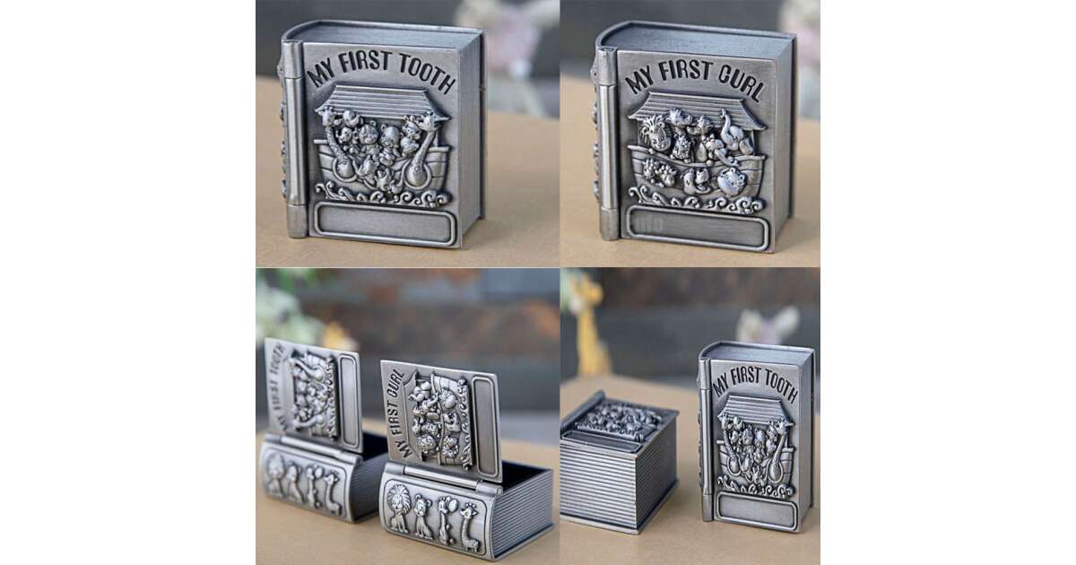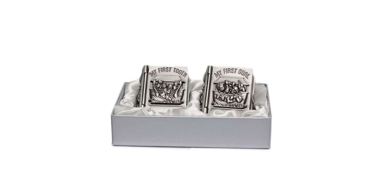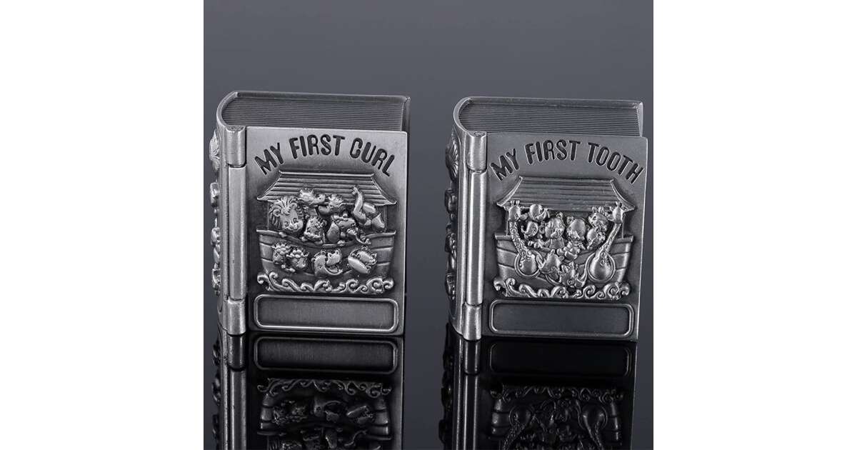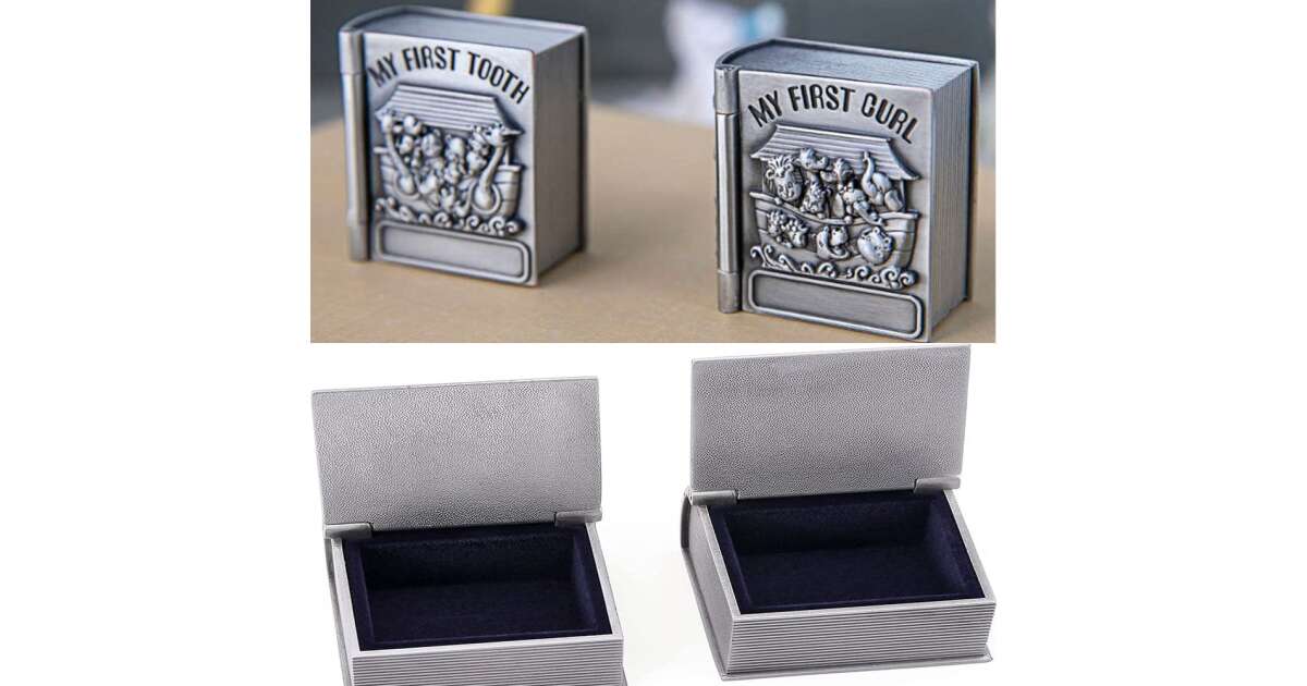 - Each box has a cute inscription: "First Tooth" and "First Lock of Hair"