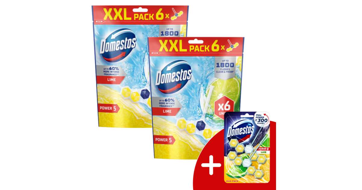 Domestos Power5 WC Fresh Block Lime (12x50g) + Free Domestos Duo WC Block