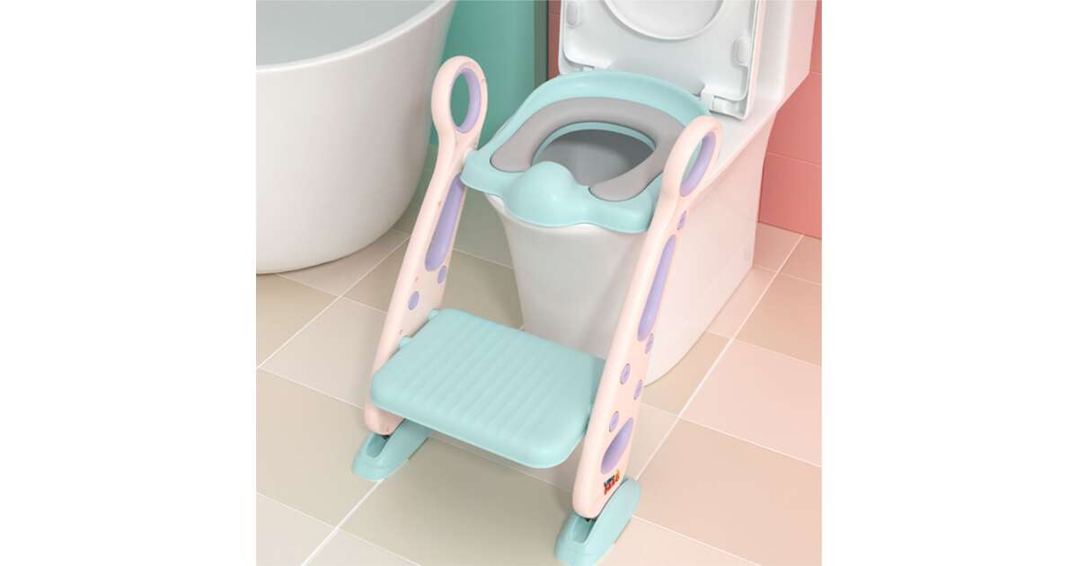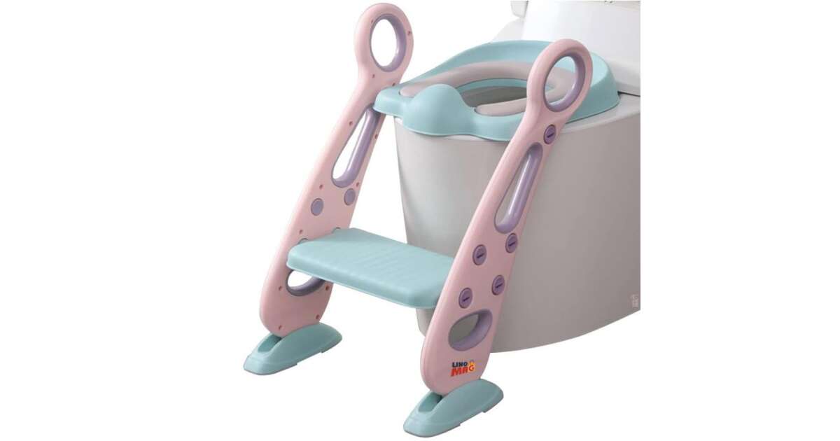Linomag® Children's Toilet Trainer with Ladder, Foldable, Adjustable Height, Soft Rolls, 42.6 x 55 x 41.5 cm, Rose/Blueish Green reviews