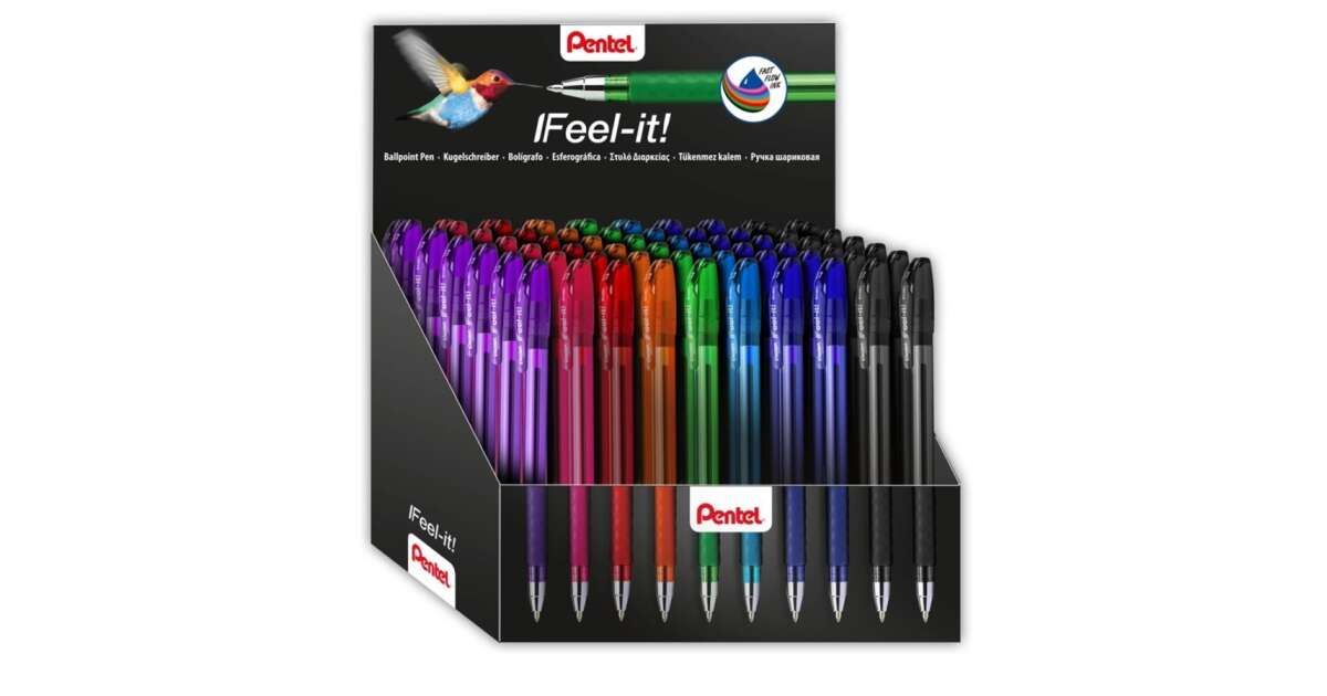 This 60-piece Pentel Feel it ballpoint pen set is perfect for home, office, or school. Enjoy a comfortable grip and a smooth writing experience!