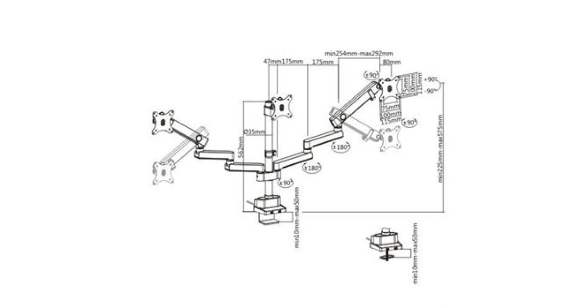 This Maclean MC-811 desk mount is perfect if you work with three monitors and want to maximize comfort and ergonomics. Adjustable height, tilt, and swivel let you find the ideal position. High-quality aluminum arms ensure durability and stability.