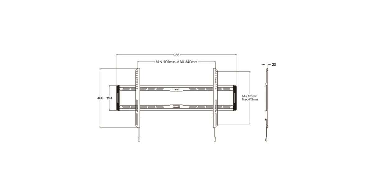 - VESA Standard: 200x200, 300x200, 300x300, 400x200, 400x300, 400x400, 600x300, 600x400, 700x400, 800x400 mm (Max. VESA: 800x400 mm)
