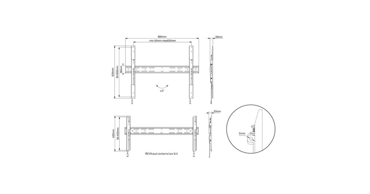 Universal & VESA standard: 100x100, 200x100, 200x200, 200x600, 300x200, 300x300, 300x600, 400x200, 400x300, 400x400, 400x600, 600x300, 600x400, 600x600, 700x400, 700x600, 800x400, 800x600