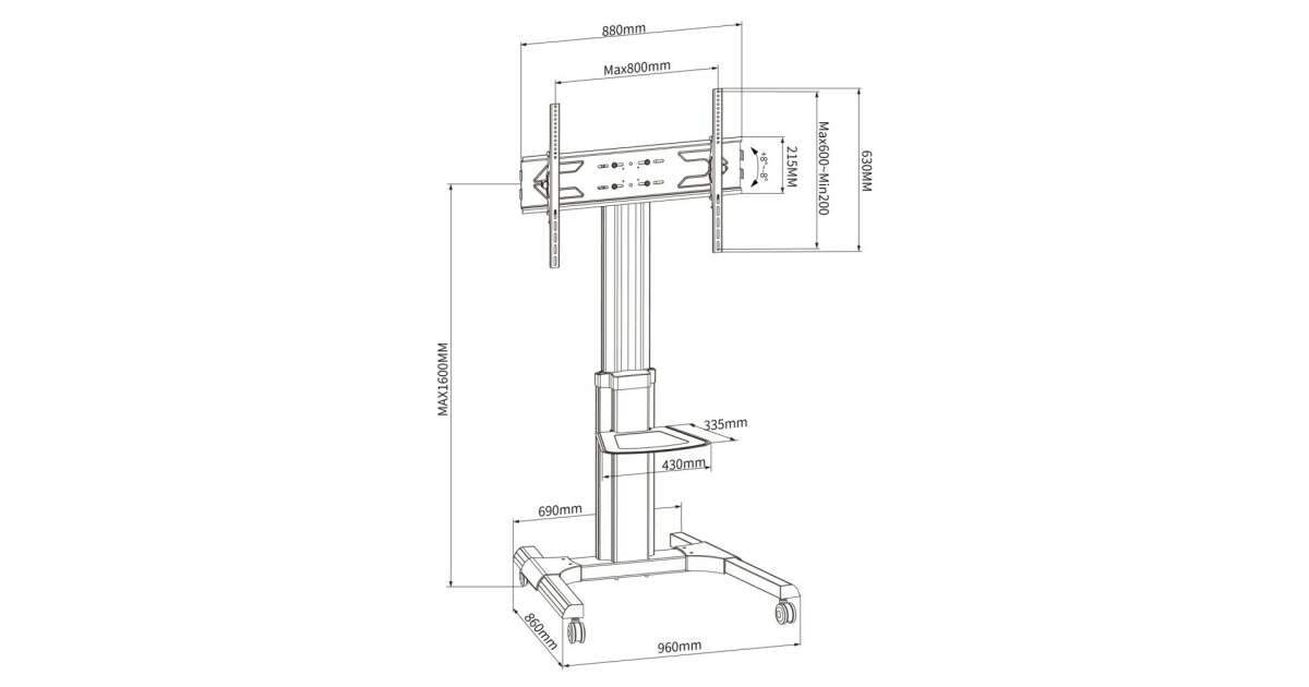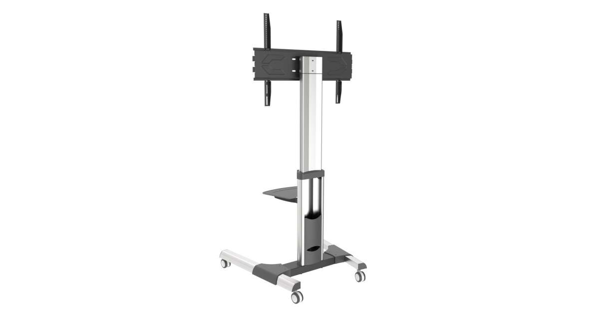 This handy mobile TV stand is ideal for 50-92" LCD or LED TVs and monitors. It's easy to move, height-adjustable, and tiltable, so you can always find the perfect viewing angle. The built-in shelf provides extra space for your set-top box or other AV equipment.