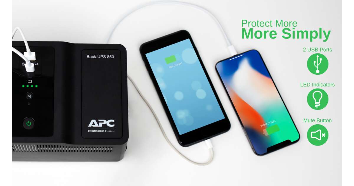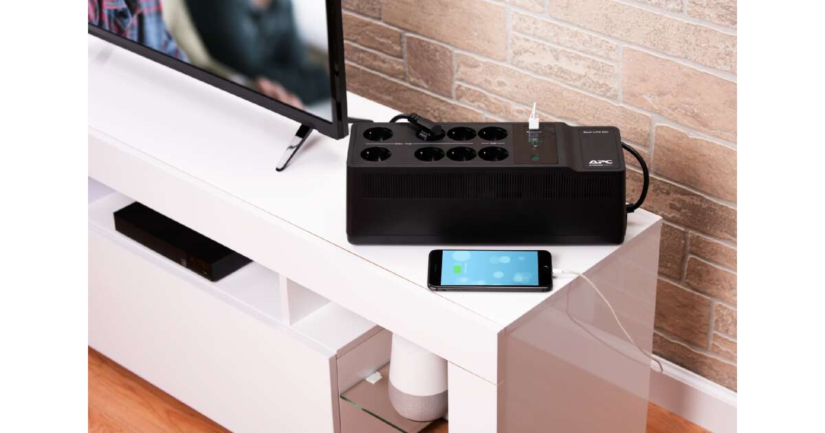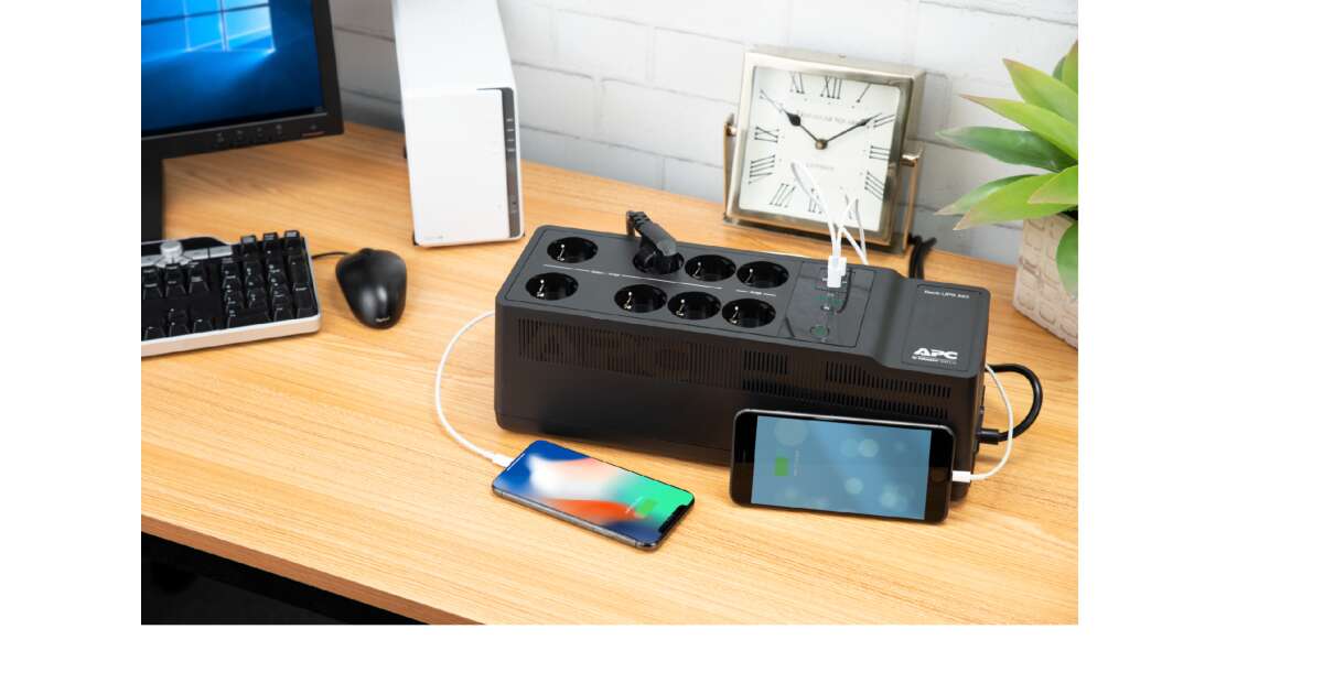 This APC Back-UPS BE850G2-G uninterruptible power supply (UPS) protects your valuable devices from unexpected power outages. With its 850VA (520W) power output, it provides enough juice to keep your computers, routers, and other important devices running during a power cut. It also has convenient USB and USB-C ports, so you can charge your phone or tablet.