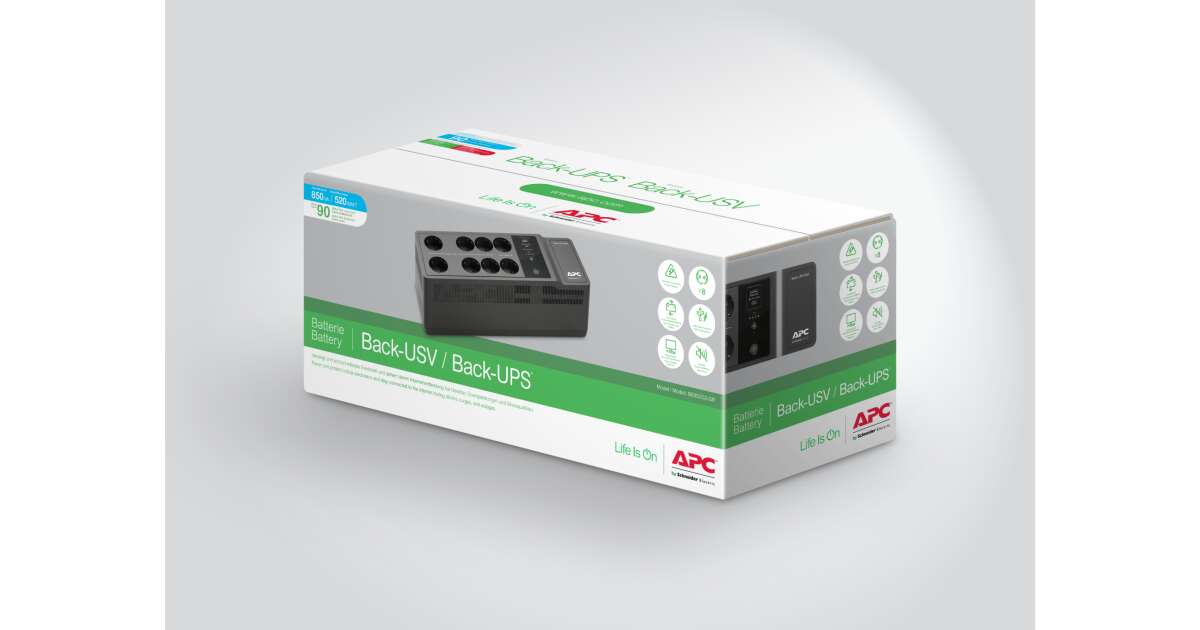 Apc back-ups be850g2-g (es) (2+6 schuko) 850va (520 w) 230v power-saving offline uninterruptible power supply, usb+usb-c BE850G2-GR shopping: