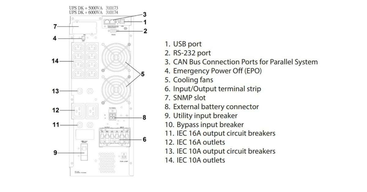 - EPO: Emergency Power Off (EPO) port for emergency shutdown