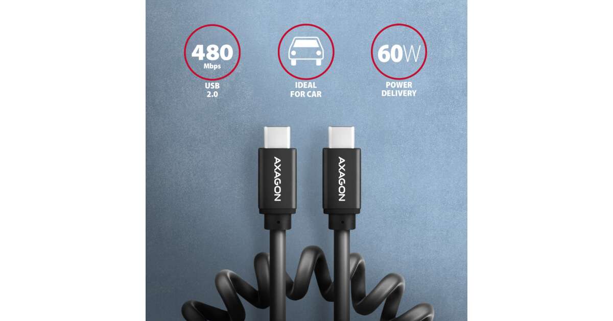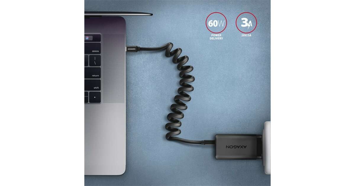 This handy 60cm Axagon Twister USB-C cable is perfect for fast charging and data transfer for your phone, tablet, or laptop. Its spiral design makes it easy to store and carry, ideal for travel too! 🚗