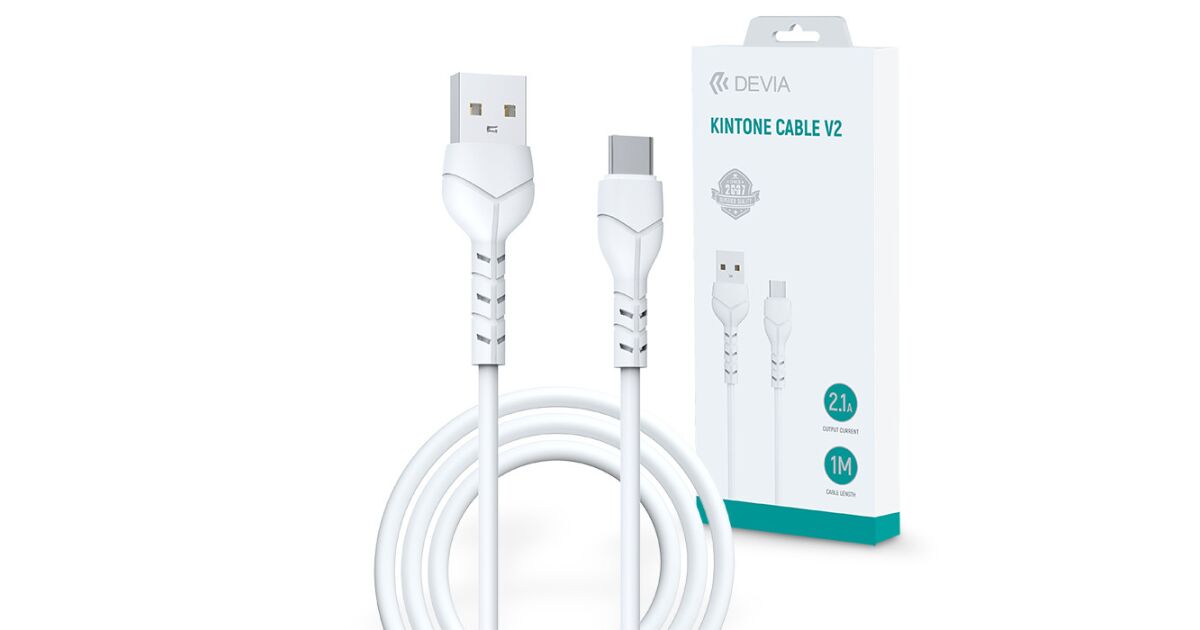 This 1-meter Devia USB-A to USB-C cable is perfect for quickly and safely charging your phone, tablet, or other device with a USB-C connector. The 5V/2.1A output power ensures efficient charging, while the durable PVC material guarantees a long lifespan.