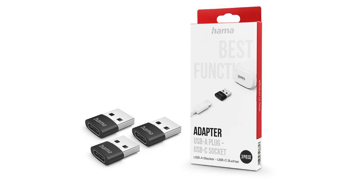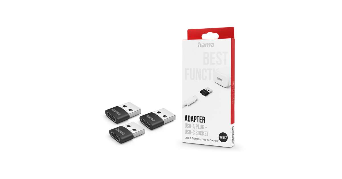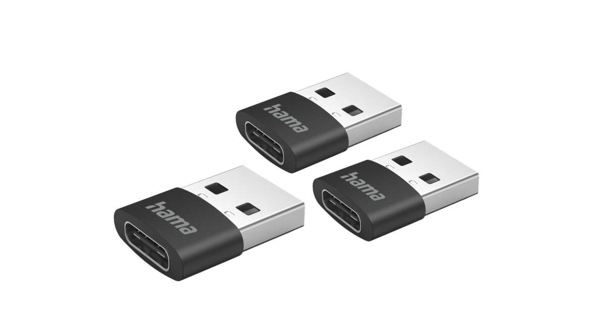 HAMA USB Type-C - USB-A adapter - HAMA Adapter USB-A Plug - USB-C Socket - 3 pcs/pack - black