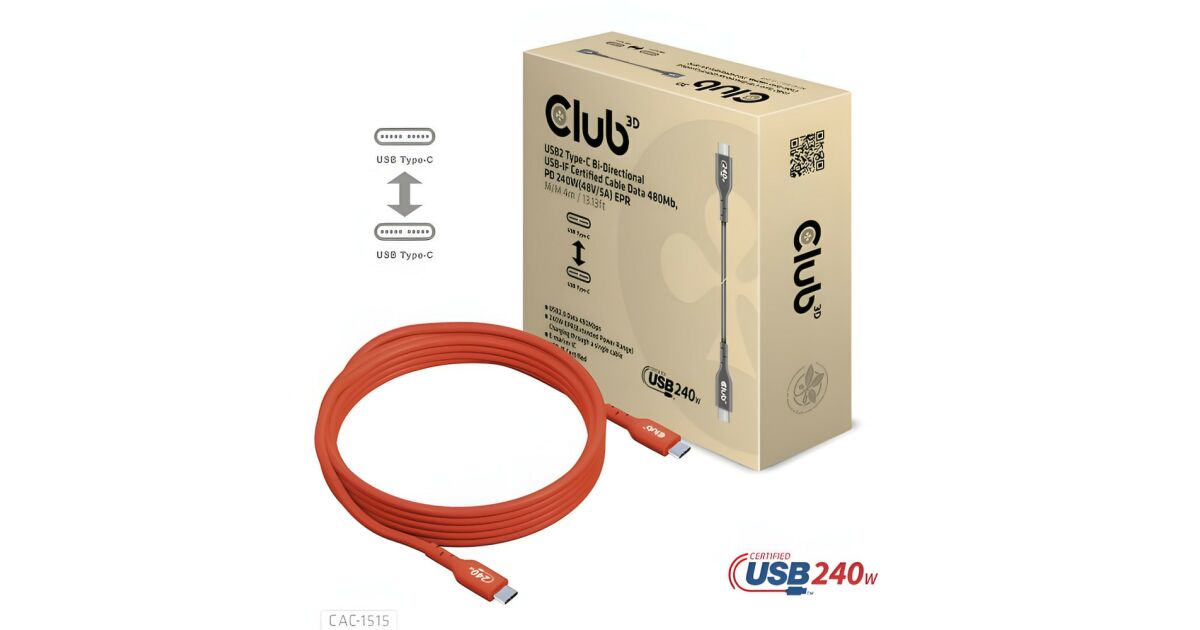 Club3D USB-C 240W Charging Cable: Fast Charging and Data Transfer ⚡️