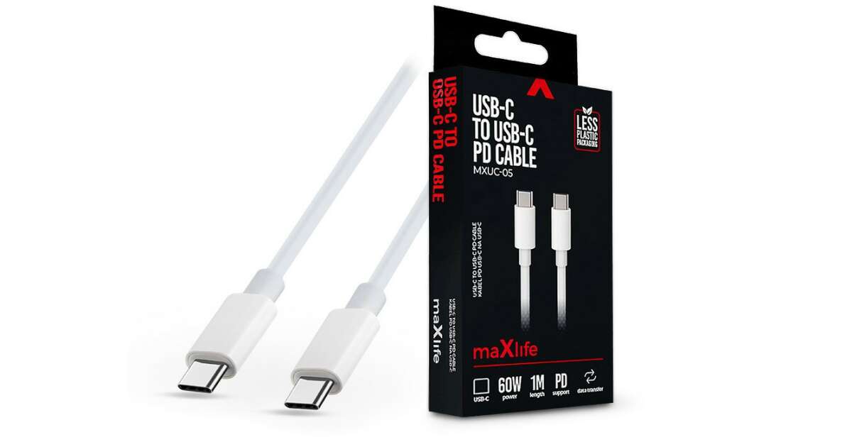 This MaxLife USB-C - USB-C charging cable is perfect for any device with a USB-C connector. The 60W power output ensures fast charging, saving you valuable time. The 1-meter cable length gives you enough freedom of movement, letting you conveniently connect your devices, even if they're further away from the outlet.