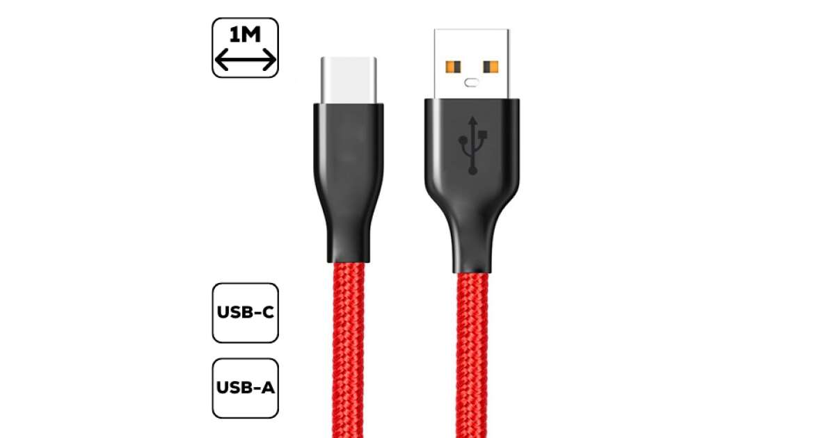 Durable Fabric-Covered USB-A to Type-C Charging and Data Cable (1m, Red) 💪