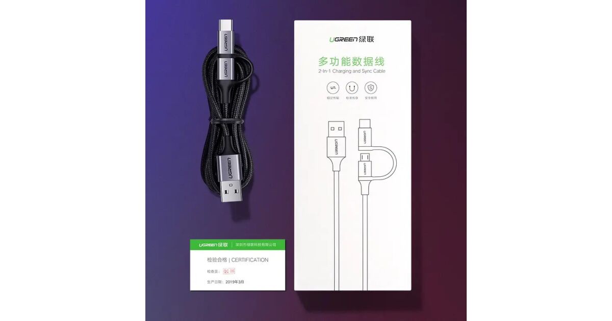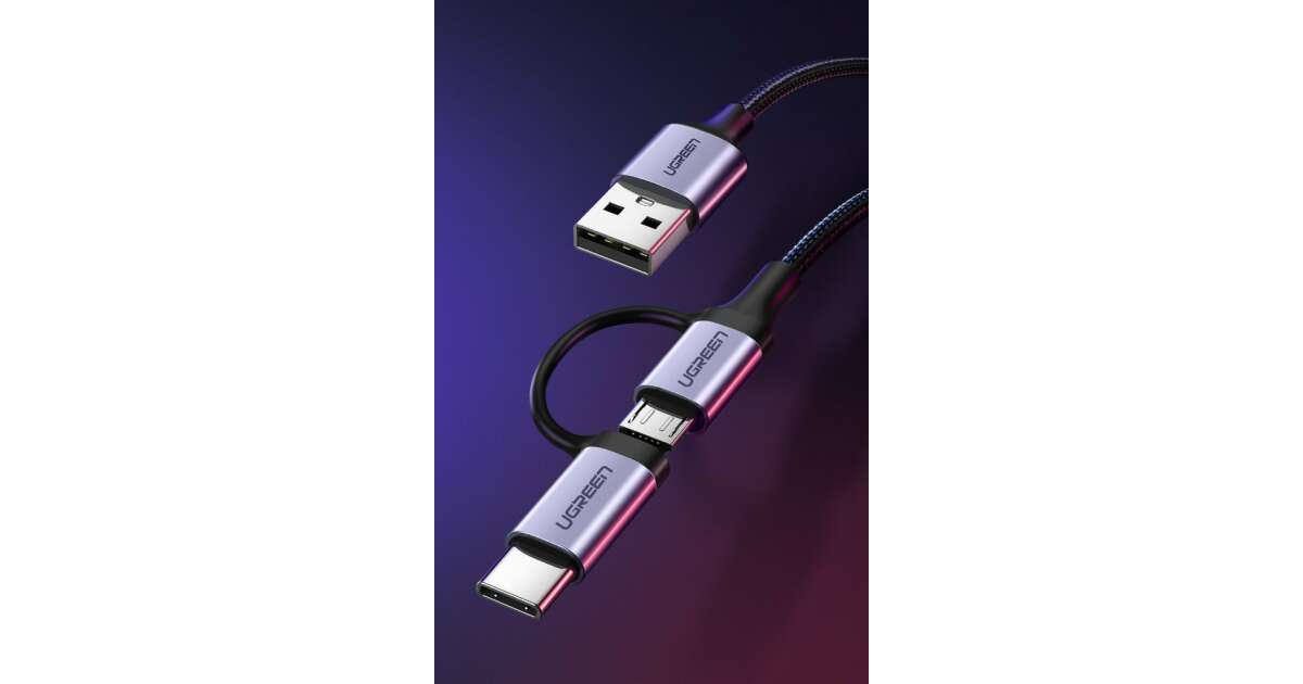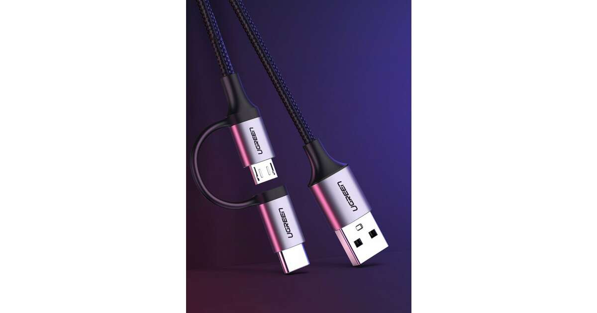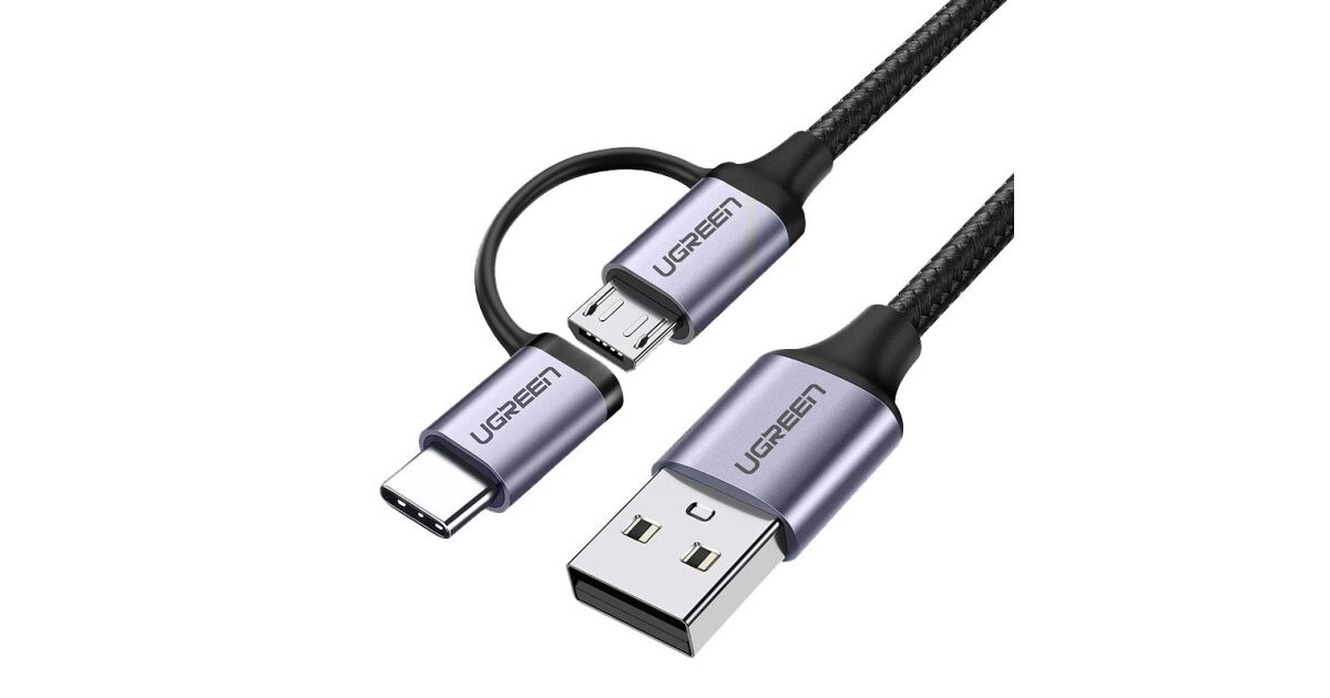 This UGREEN dual cable offers fast charging and data transfer for both USB-C and MicroUSB devices at the same time. Made from high-quality materials, it's a durable and reliable companion for everyday use. 🔌