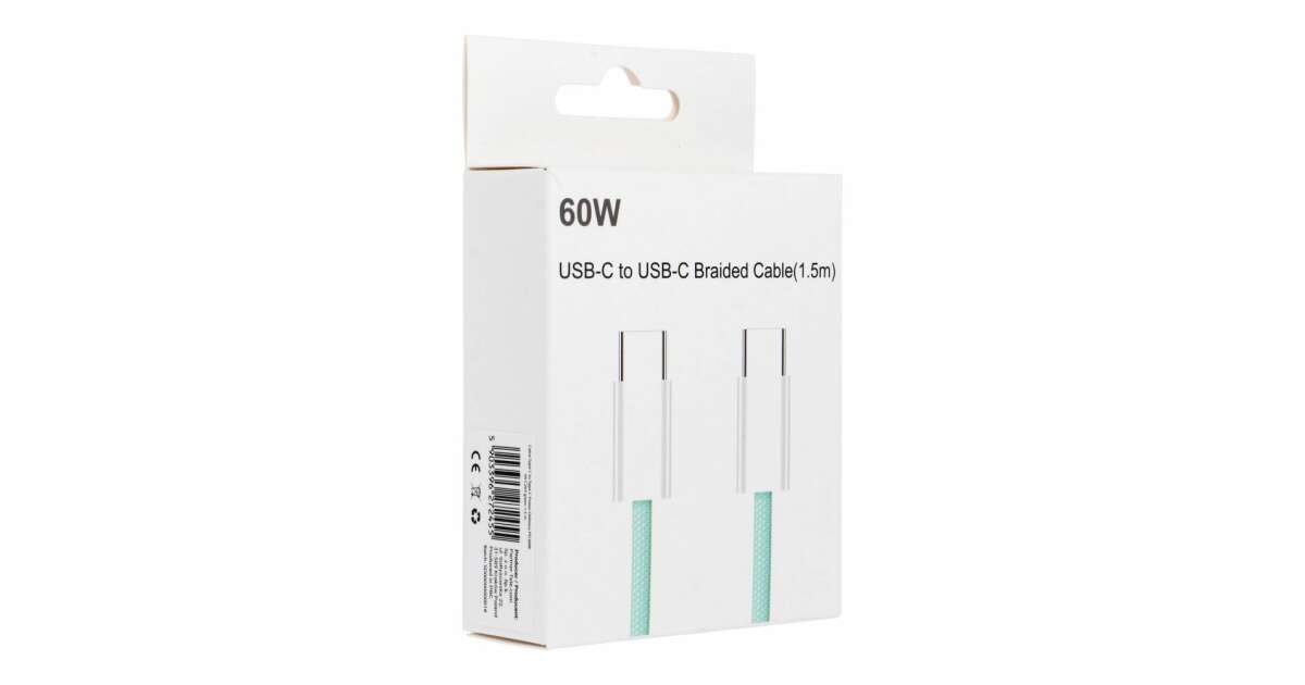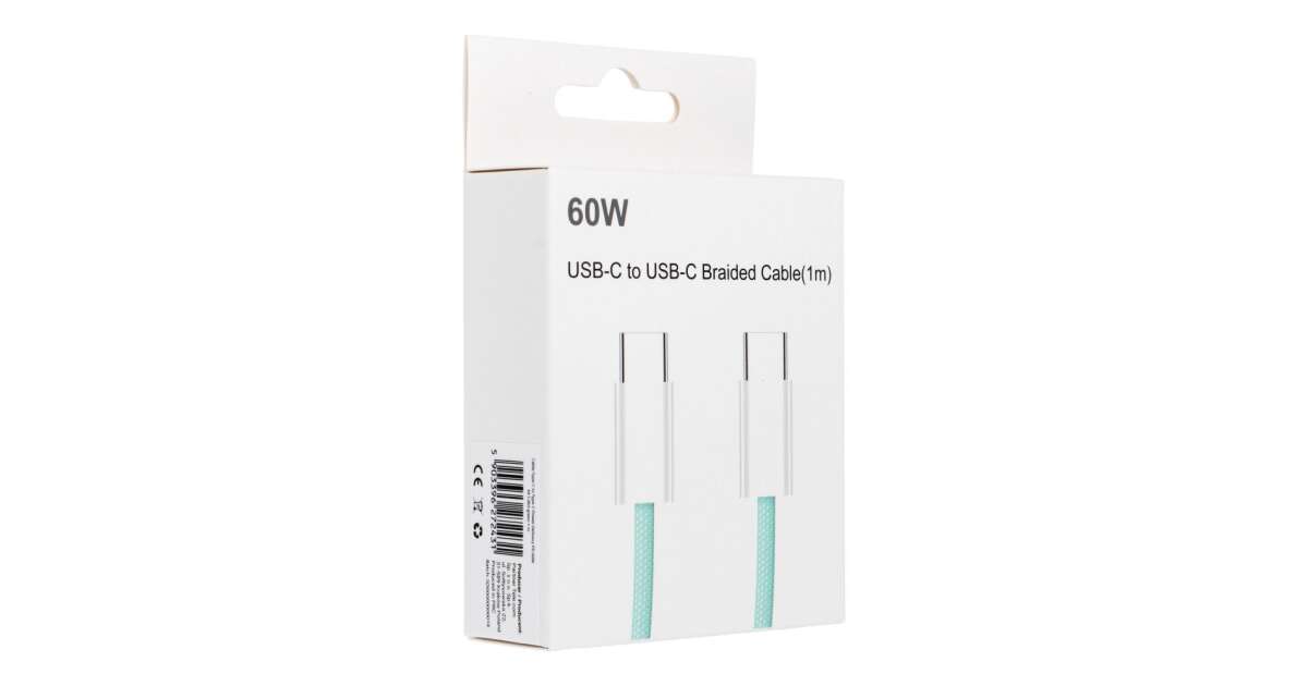 This 1-meter green fabric USB-C to USB-C cable is perfect for any device with a USB-C port. Thanks to its 60W Power Delivery support, you can charge your devices super fast (requires a fast charger). It's not just for fast charging; it also supports data transfer.