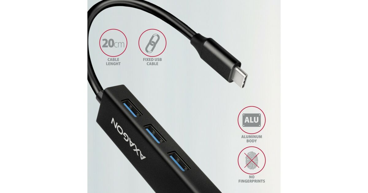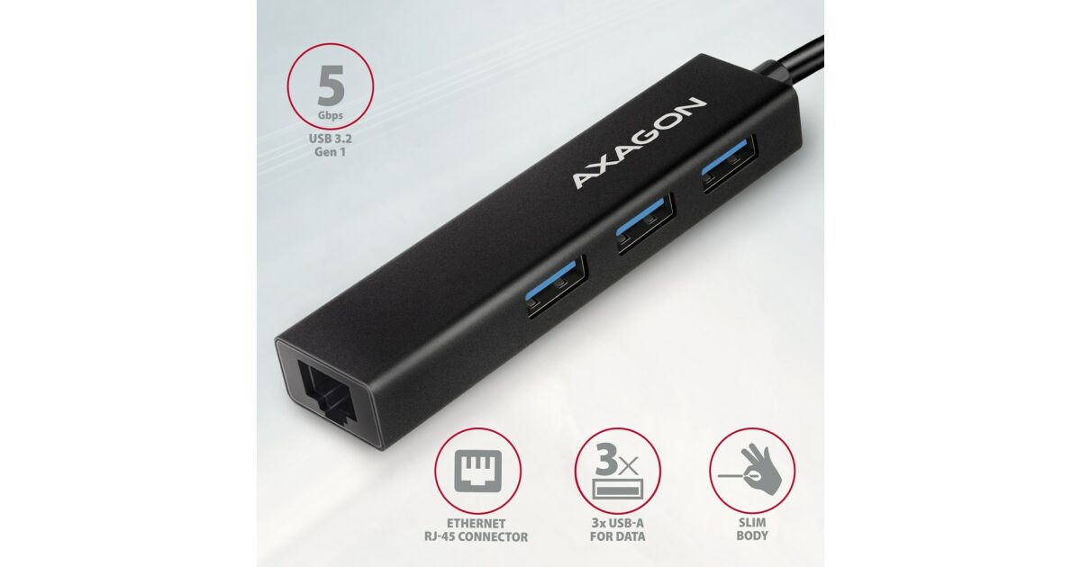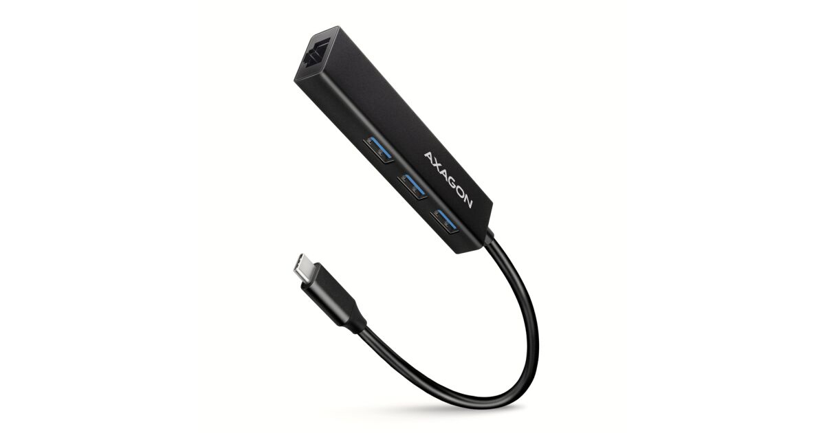 Axagon USB-C Hub: 3 USB-A ports + Gigabit Ethernet RJ45