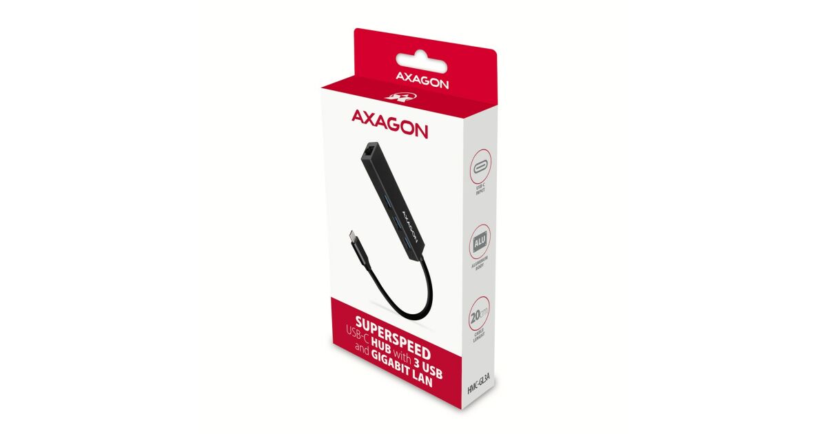 Axagon hmc-gl3a usb-c 3port usb hub and gigabit ethernet rj45 lan, black HMC-GL3A
