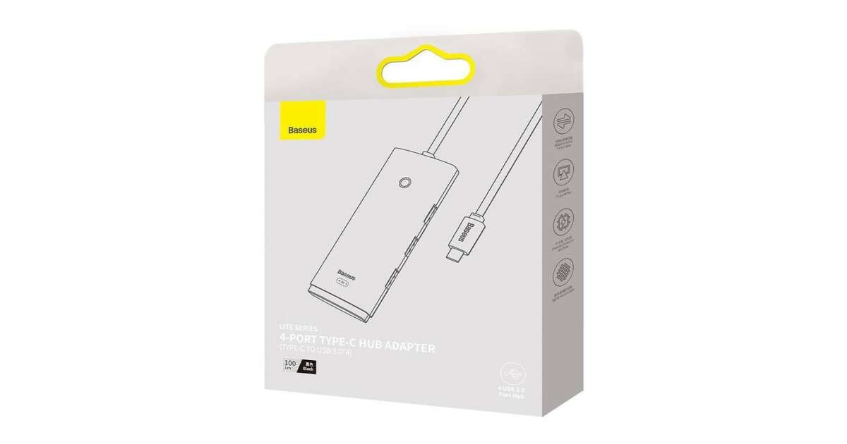 Baseus Lite Series Hub 4in1 USB-C 4x USB 3.0 + USB-C, 1m (black) description of