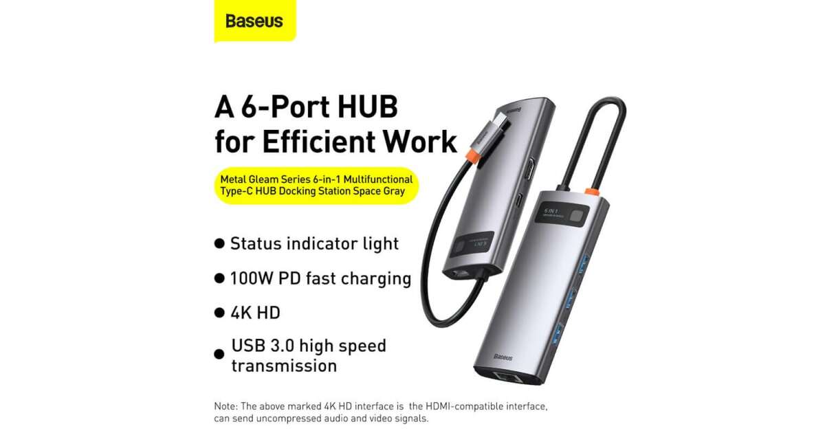 Baseus Metal Gleam 6-in-1 USB-C Hub: The Perfect Laptop Companion 💻