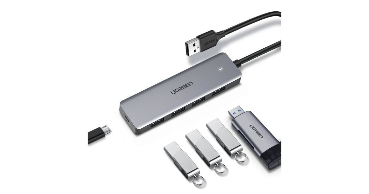 UGREEN 4-in-1 Adapter, USB Hub 4x USB 3.0, micro USB, grey (50985) (UG50985)