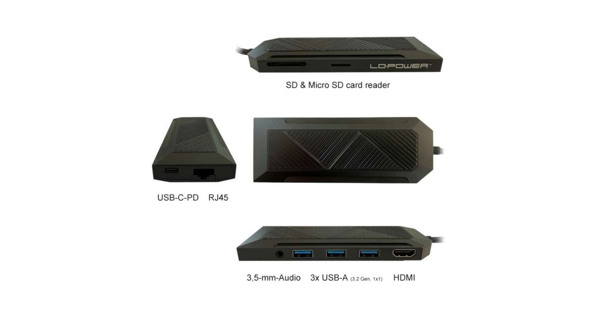 | Ports | 3x USB-A, 1x USB-C PD, 1x HDMI, 1x SD/Micro SD, 1x RJ45, 1x 3.5mm Jack |