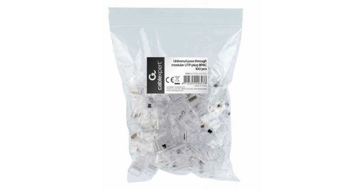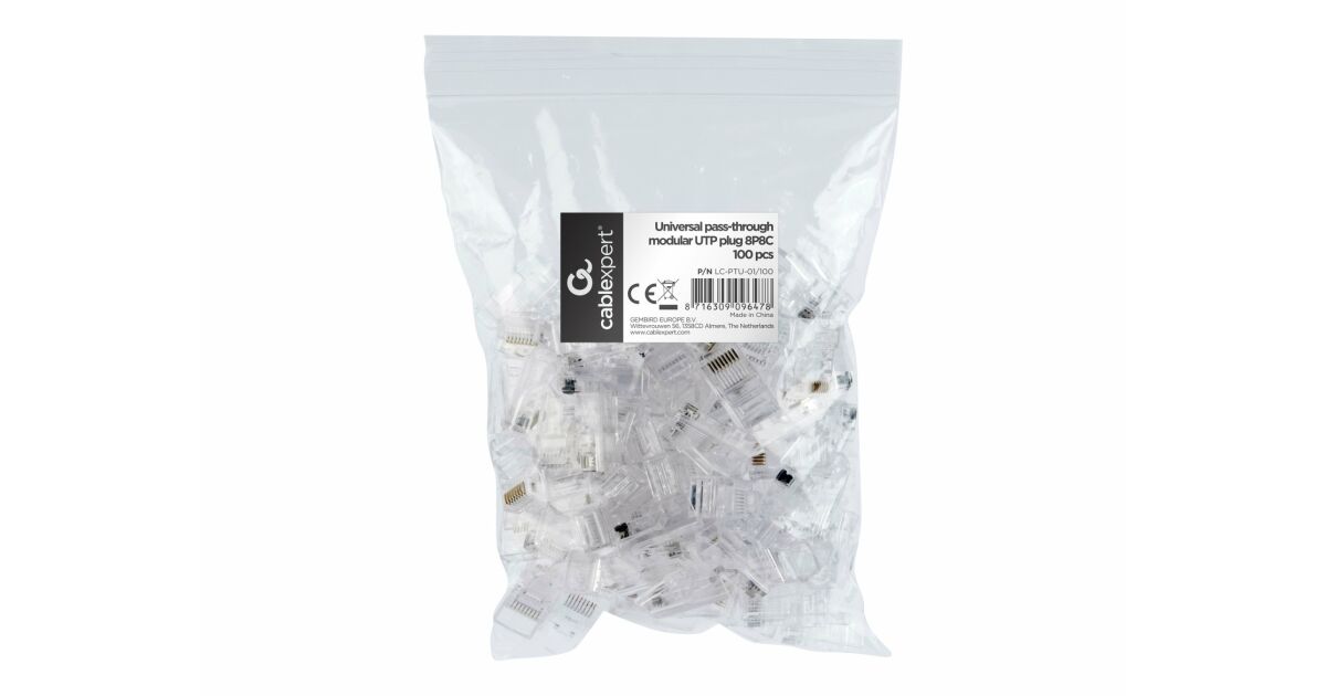Gembird LC-PTU-01/100 Universal pass-through modular UTP plug 8P8C, 100 pcs per bag LC-PTU-01/100 description of