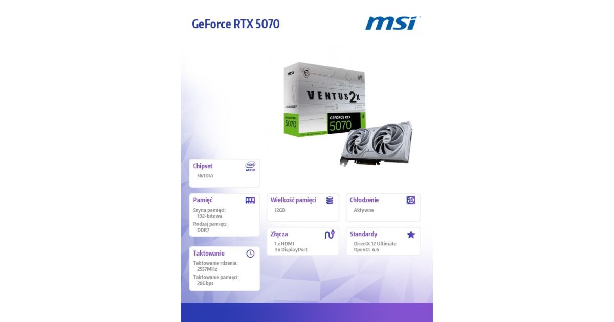 Msi video card pci-ex16x nvidia rtx 5070 ventus 2x white 12gb ddr7 oc RTX 5070 12G VENTUS 2X OC WHITE