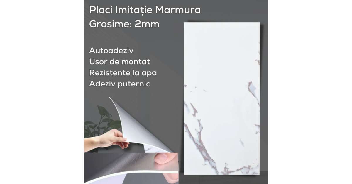 20 pcs Tapetoo Marble-look Self-adhesive Wallpaper, Waterproof, Modern Design, Easy to Install, Strong Adhesive, 2 mm thick, 3.6 sqm coverage, 30 x 60 cm, White/Grey description of
