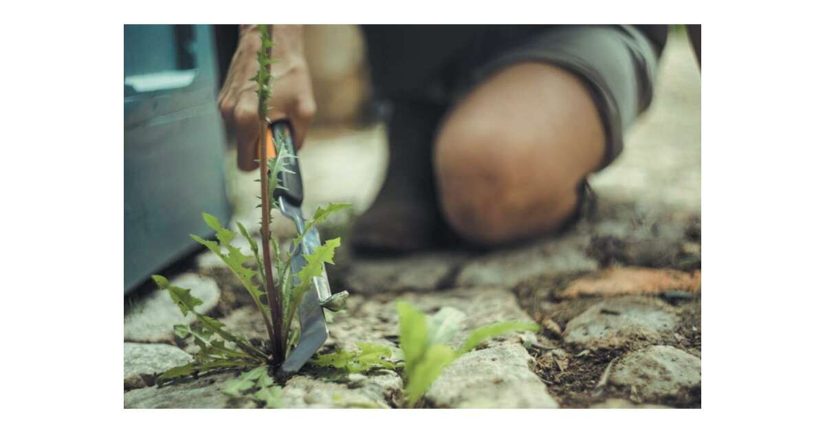 Carefully place the blade under the weed's root, then gently lift the weed from the ground. Use caution due to the sharpness of the blade!