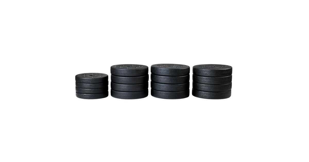 - Plastic coating on the weights: protects the floor and reduces noise.