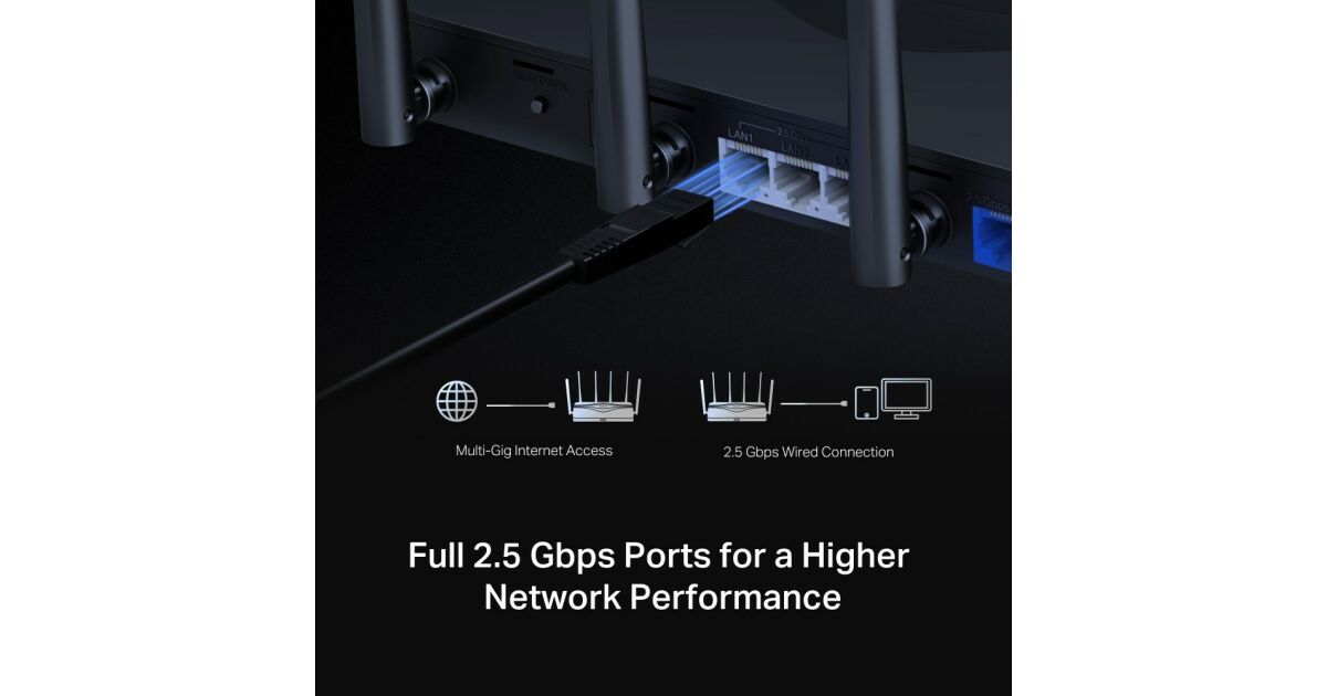 - 2.5 Gbps Ports: 1x WAN and 3x LAN ports for lightning-fast wired connections.