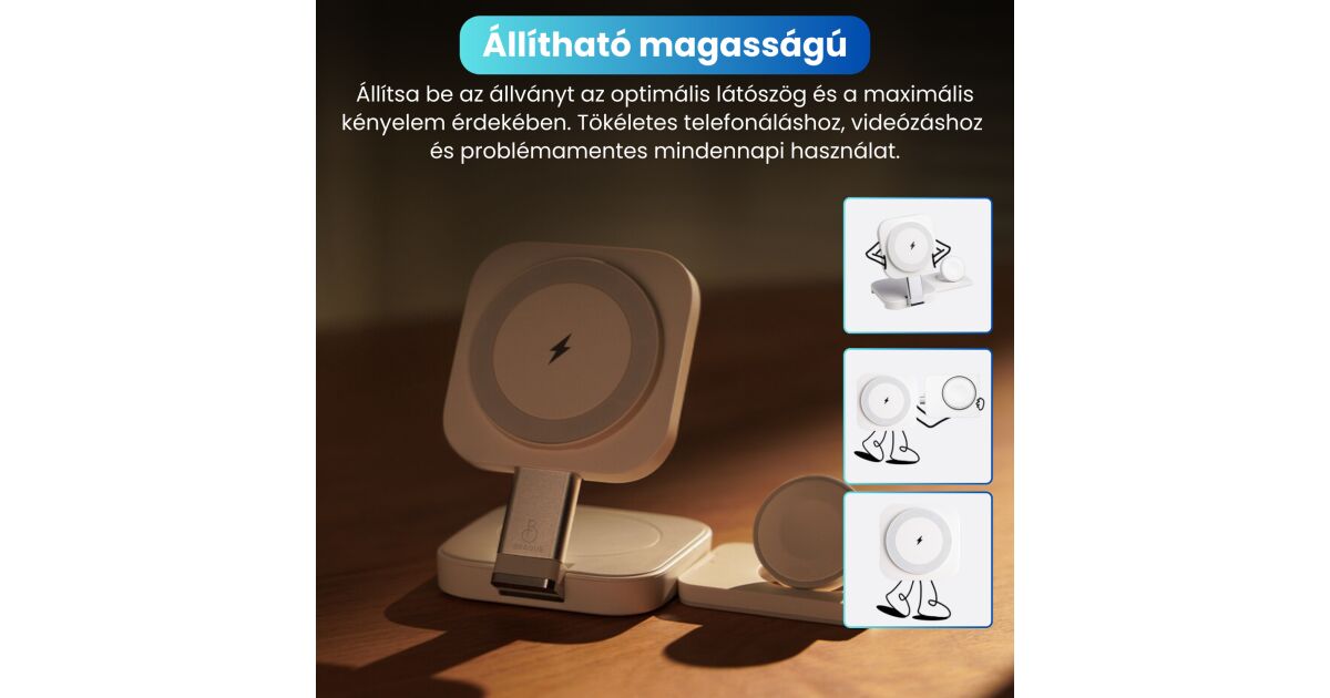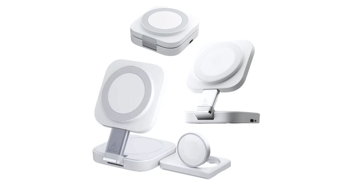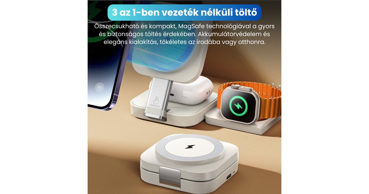 BRAGUS 3-in-1 Wireless Charger, Foldable, 15W Fast Charging, with MagSafe Technology, Battery Protection, Adjustable, Compatible with iPhone, Apple Watch, AirPods, White description of