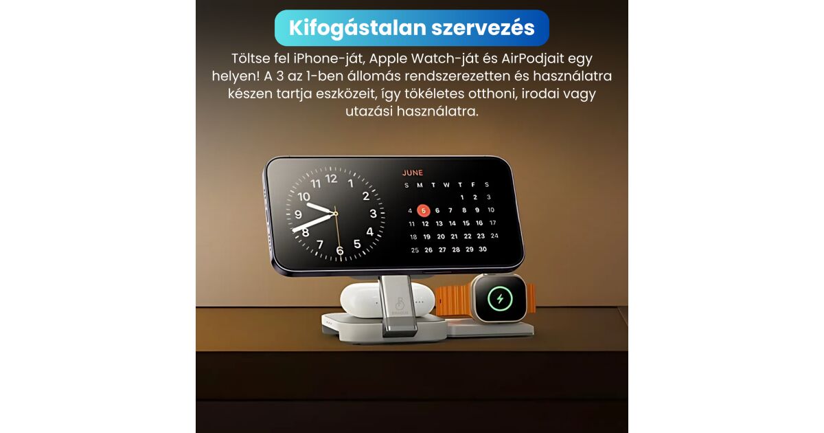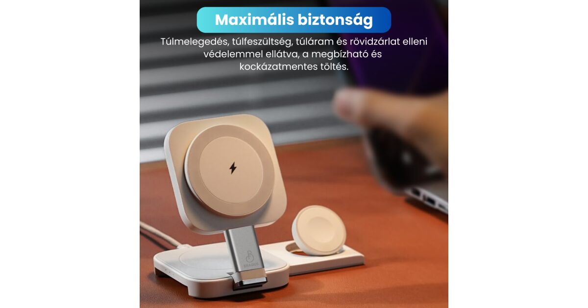 This BRAGUS 3-in-1 wireless charging station is the perfect solution for charging your Apple devices simultaneously. Thanks to MagSafe technology, it provides fast and safe charging while offering a sleek and space-saving solution for your home, office, or travels.