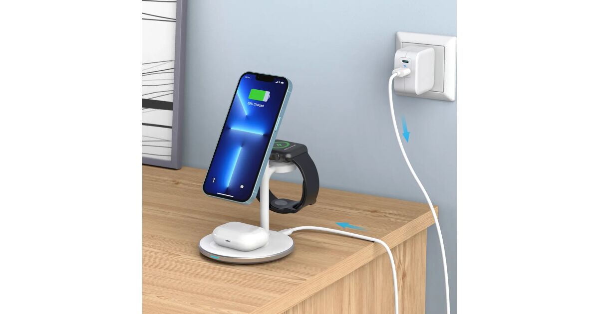 Choetech 3-in-1 Magnetic Wireless Charging Station: Charge your iPhone, AirPods, and iWatch all at once! 📱⌚️🎧