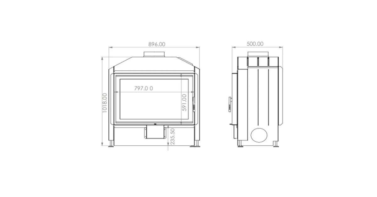 A-Caminetti FLAT 80 Open Side Fireplace/Fireplace for wood/briquettes, nominal power 12 kW, 1018 x 896 x 500 mm, efficiency 75%