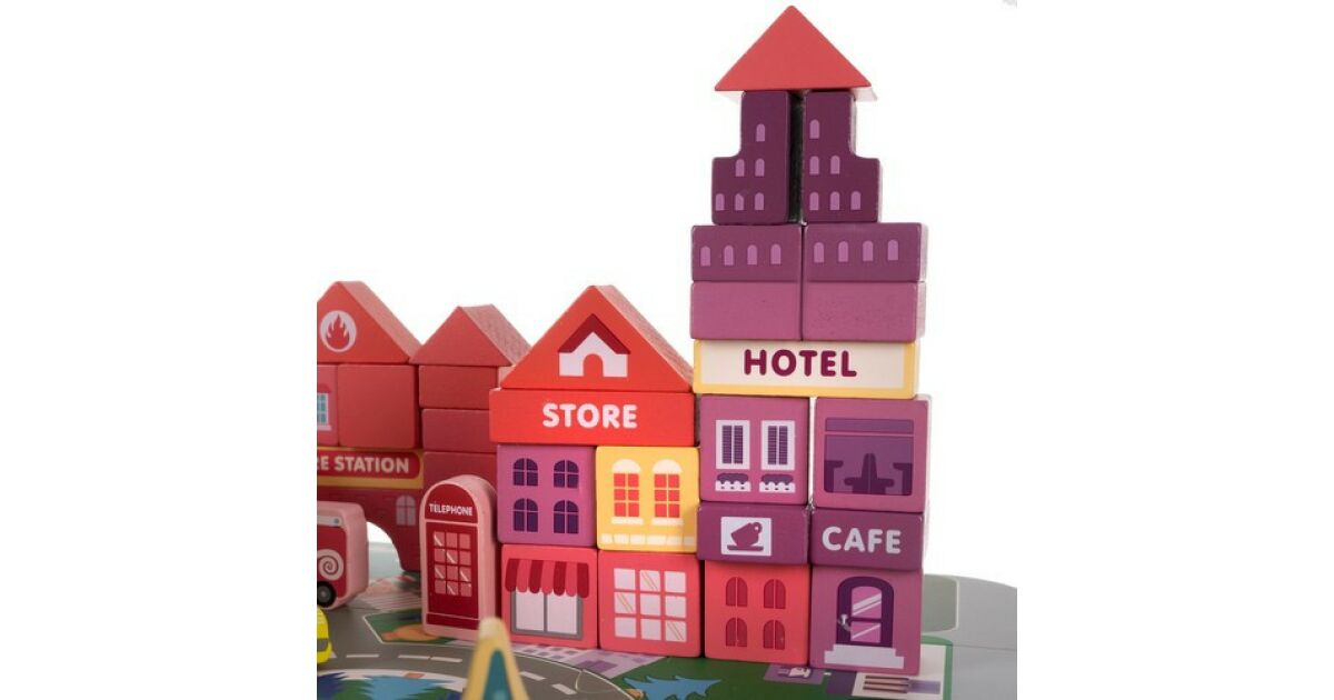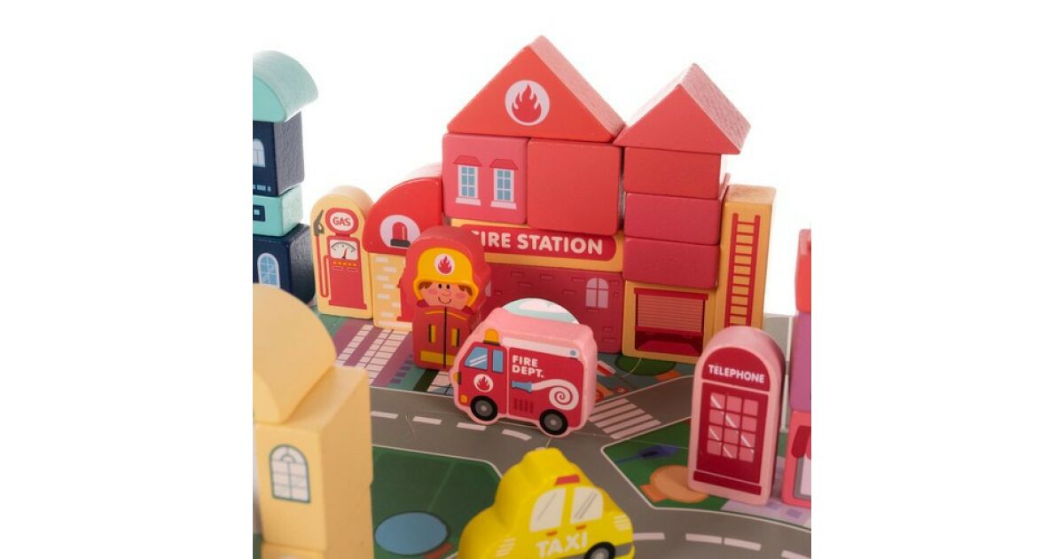 - 100 colorful wooden building blocks (including cars, trees, and figures!) 🚗🚒🚓🌳👨⚕️👩🚒👮♀️