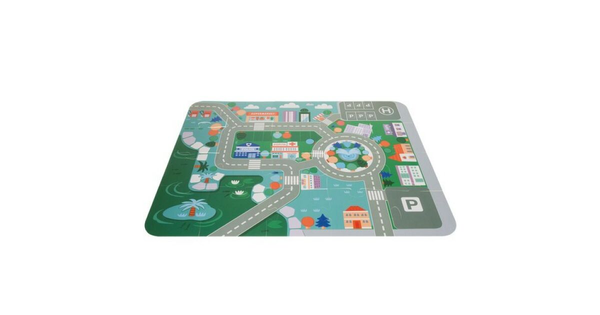 - 55x42 cm colorful play mat depicting a little city 🗺️