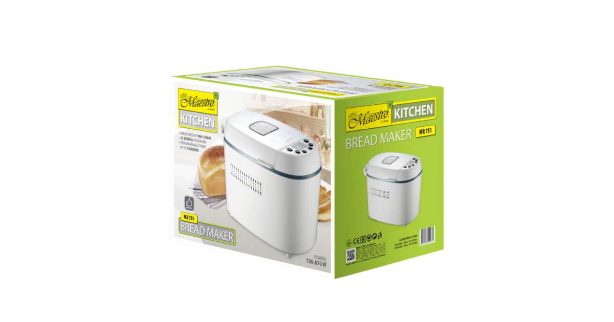 Maestro MR-751, 870 W, 12 digitalnih programa, timer, Maks. 1350 g, Bijela, Pekač kruha