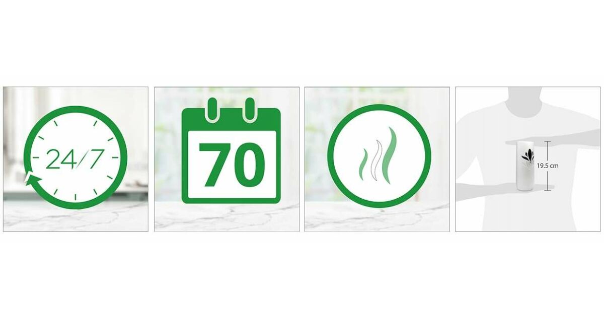 - 👃 Neutralizacija mirisa: Učinkovito neutralizira neugodne mirise u kuhinji, kupaonici i drugim prostorijama.