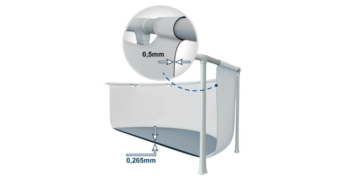 - Stabilna konstrukcija: Okvir od antikorozivnog čelika osigurava stabilnost bazena.