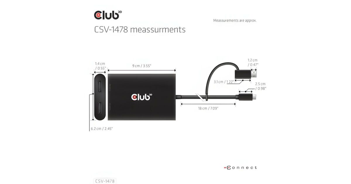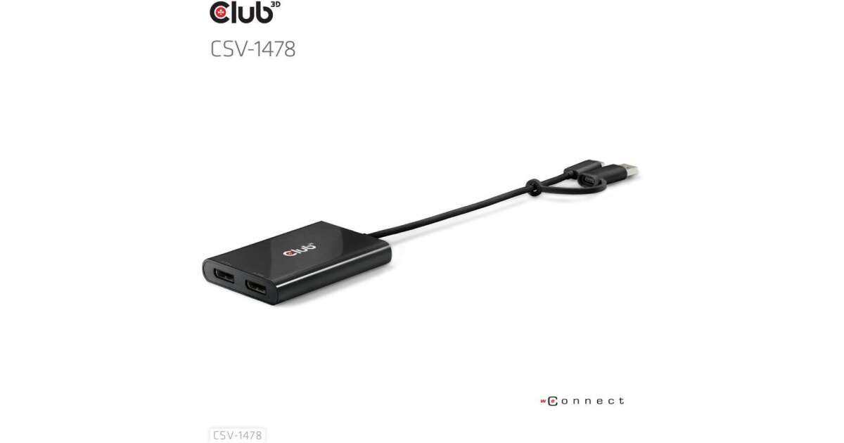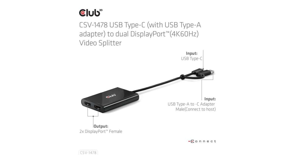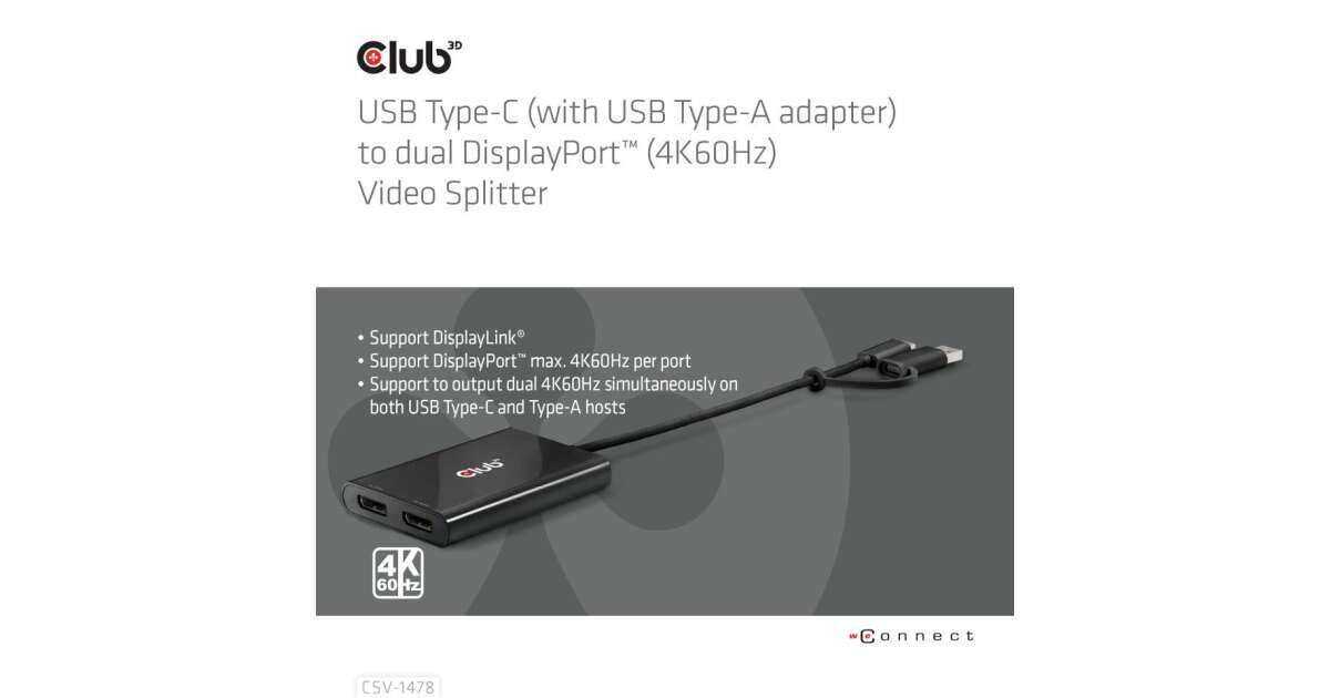 -CLUB3D CSV-1478 video razdjelnik USB Tip-C 2x DisplayPort s opisom