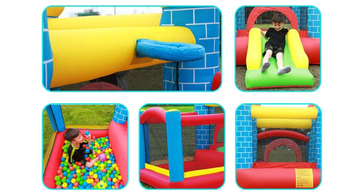 Ova ogromna Pepita skakaonica garantirano će pružiti nezaboravno iskustvo vašem djetetu! Zamislite samo sretna lica dok skaču, klize i igraju se u ovom šarenom, sigurnom dvorcu. Ugrađeno klizalište, bazen za loptice i koš za košarku stvaraju pravi raj za avanturu u vašem vrtu.